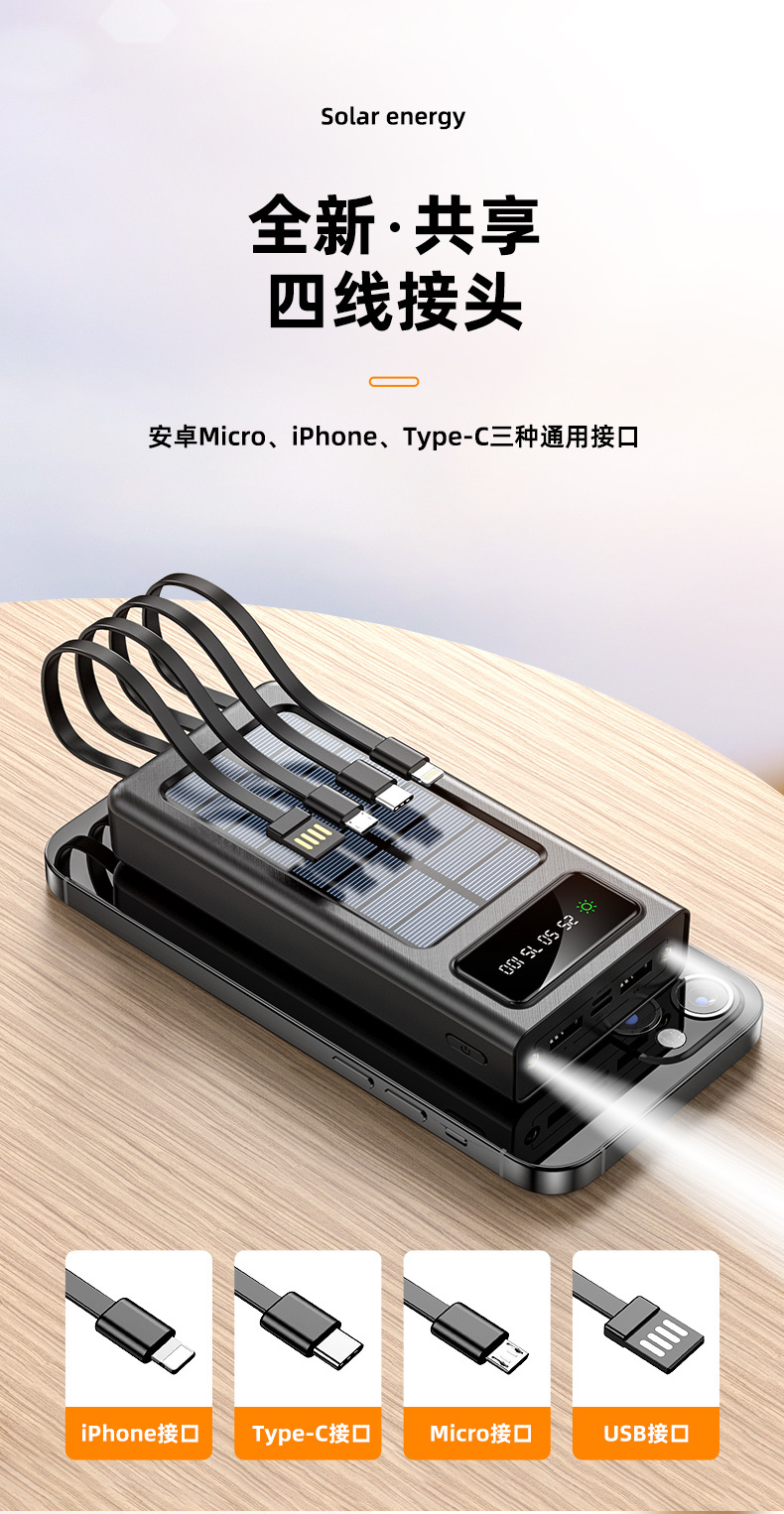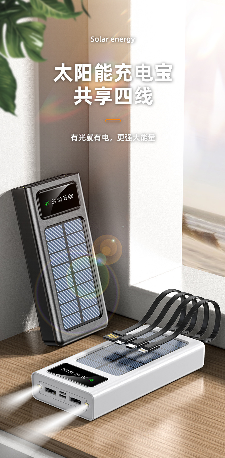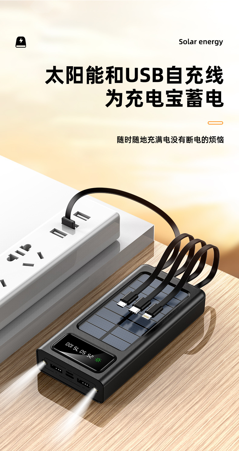 야외 국경 자체 포함 라인 태양 충전 보물 50000 mA 20000 대용량 빠른 충전 휴대용 모바일 전원 공급 장치