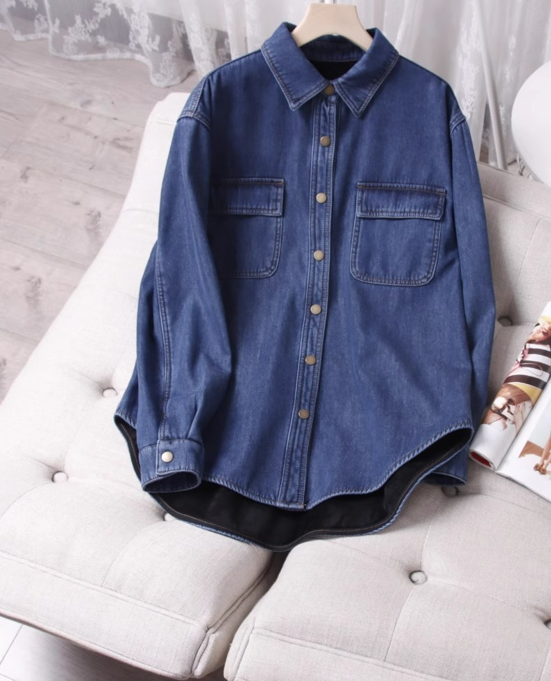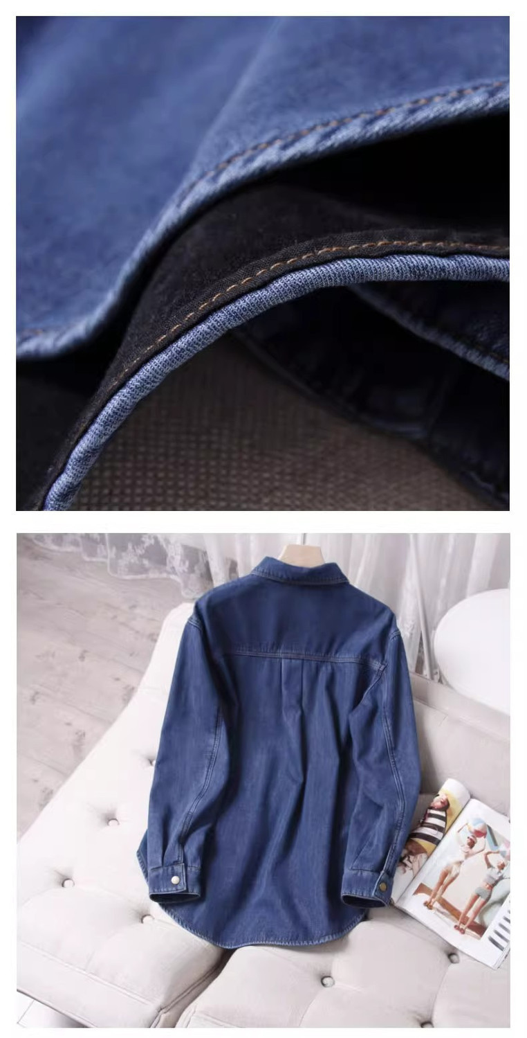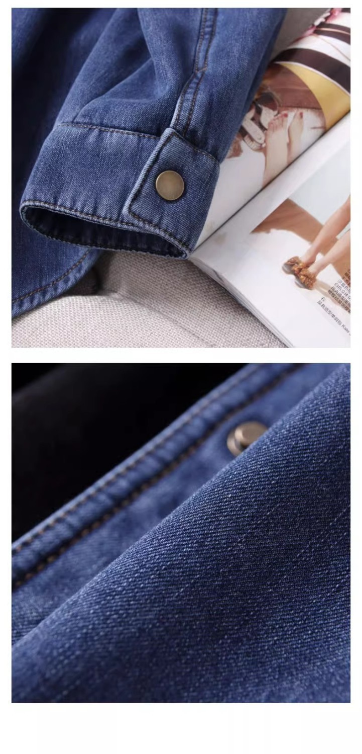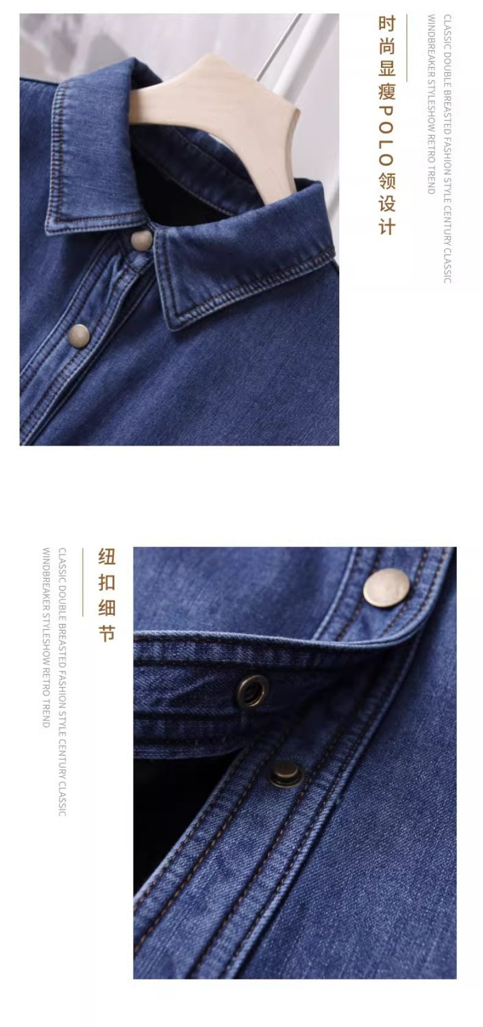 2025 가을 겨울 패션 캐주얼 기모 두꺼운 데님 셔츠 여성 올매치 슬리밍 원피스 벨벳 따뜻한 데님 셔츠스토어 가기
