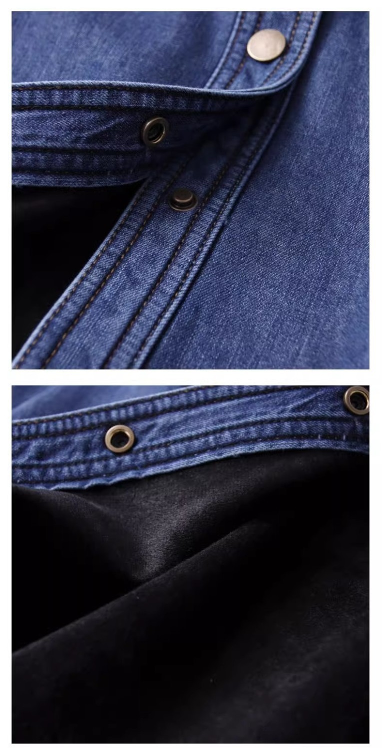 2025 가을 겨울 패션 캐주얼 기모 두꺼운 데님 셔츠 여성 올매치 슬리밍 원피스 벨벳 따뜻한 데님 셔츠