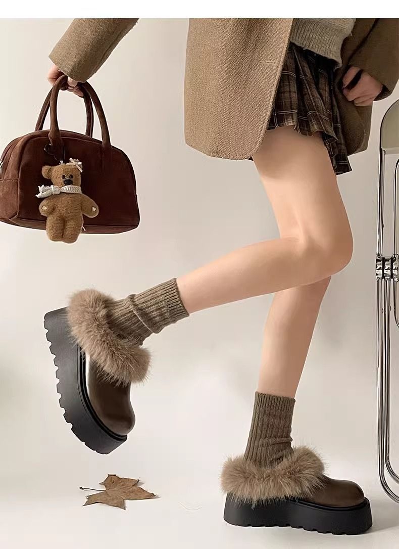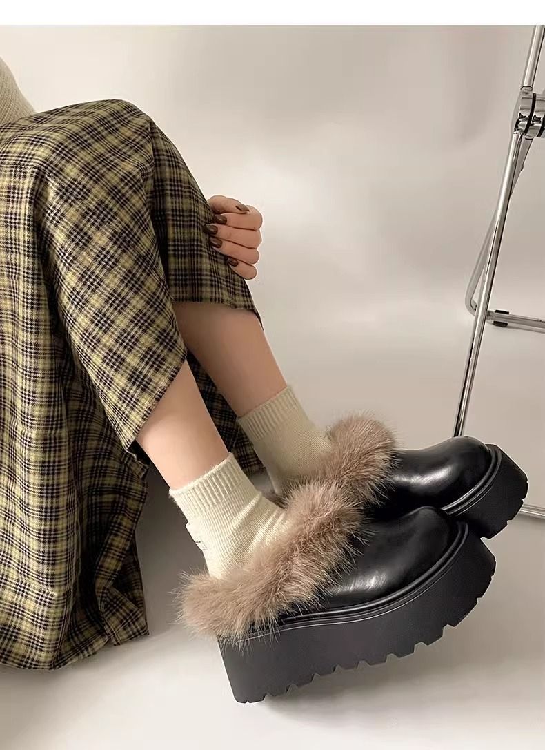 순 붉은 폭발 두꺼운 발바닥 마오 마오 스노우 부츠 여성 2024 겨울 새로운 게으른 한 페달 기모 두꺼운 따뜻한 면화 신발스토어 가기
