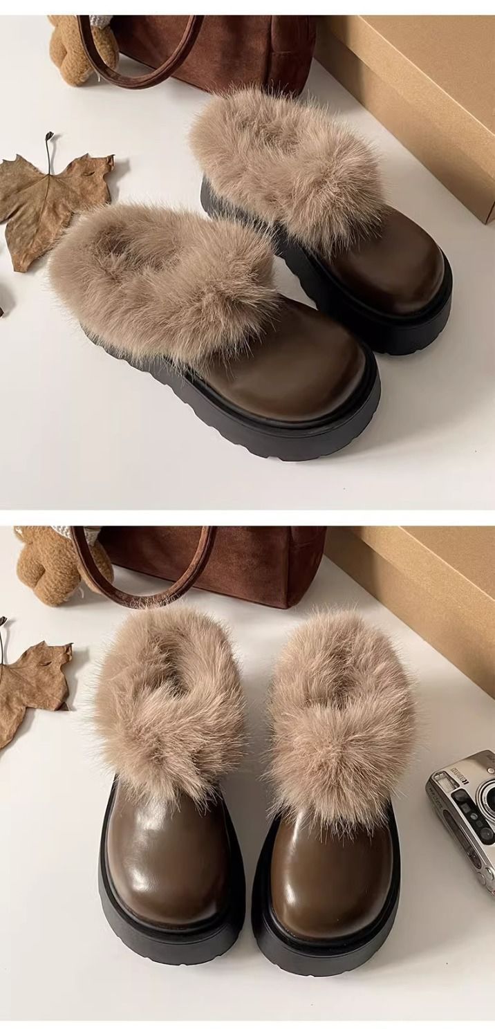 순 붉은 폭발 두꺼운 발바닥 마오 마오 스노우 부츠 여성 2024 겨울 새로운 게으른 한 페달 기모 두꺼운 따뜻한 면화 신발