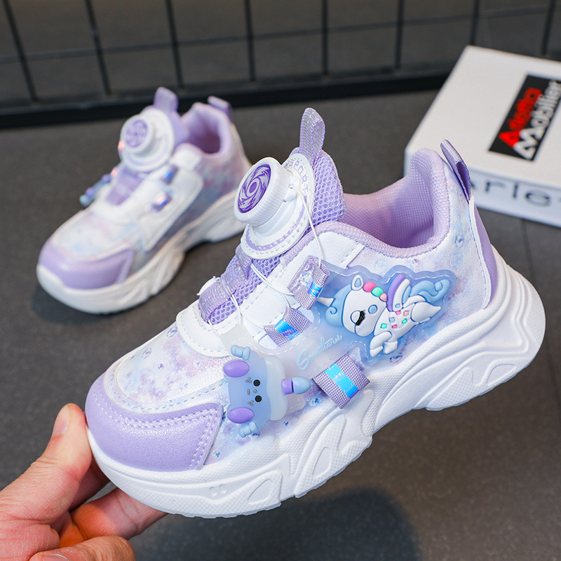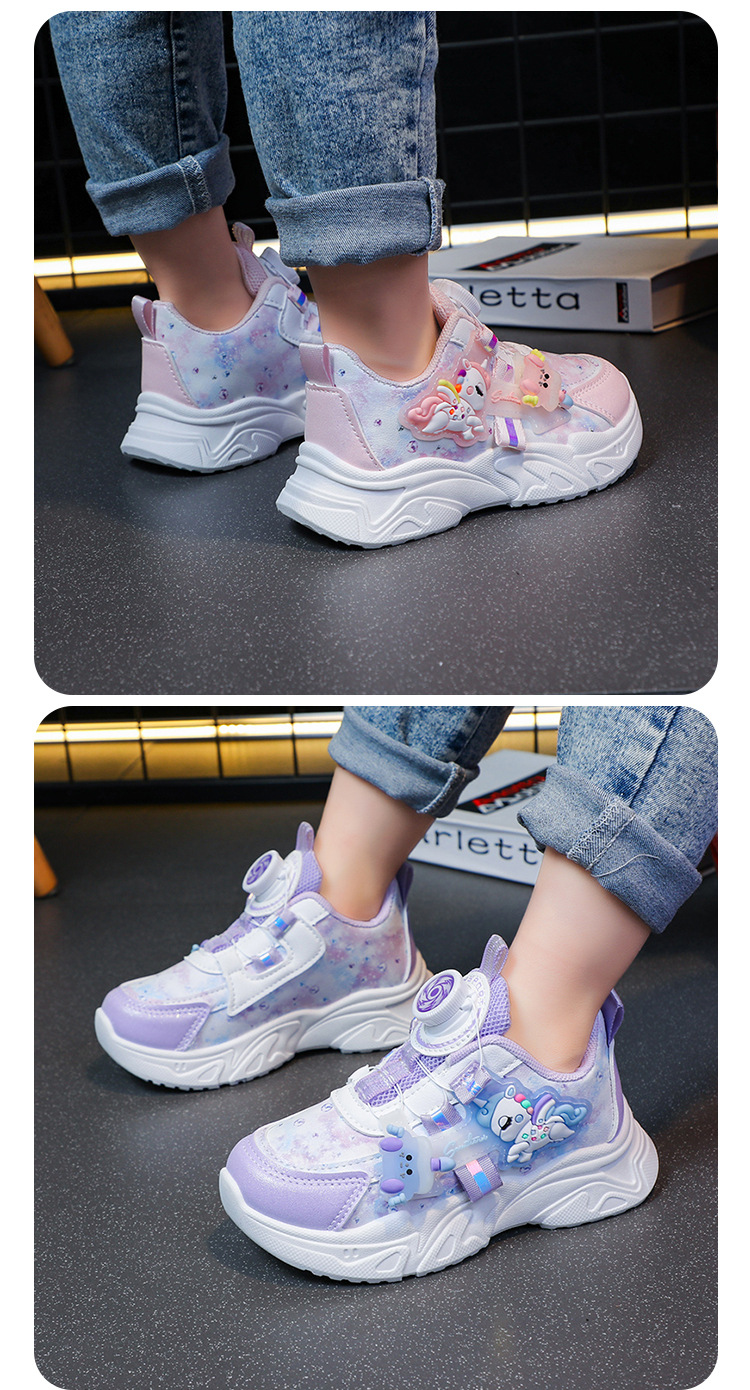 여자 신발 운동화 2024 새로운 어린이 통기성 회전 버튼 공주 스타일 토레 신발 소녀 달리기 신발