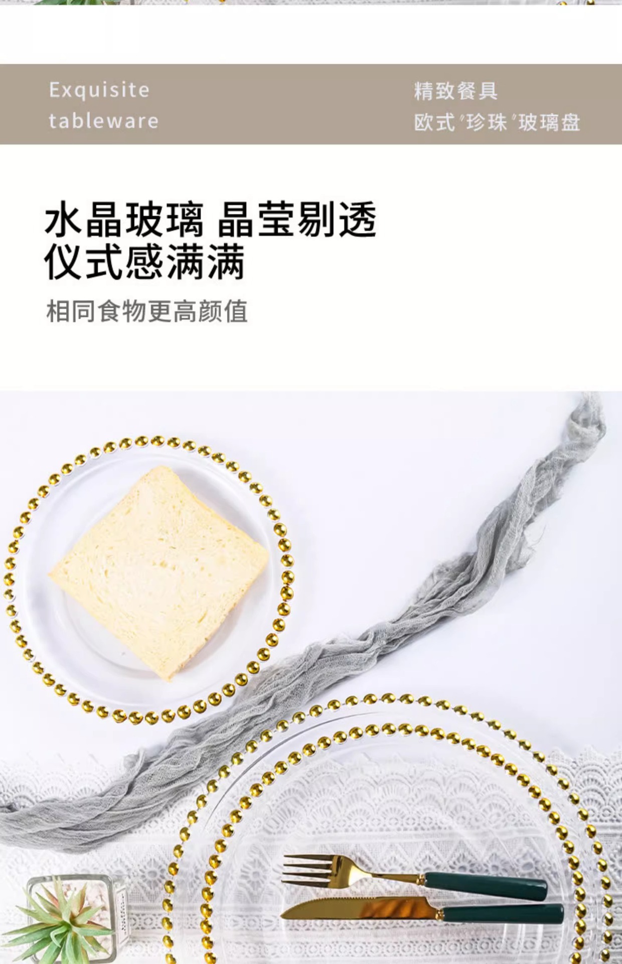 수제 금테 유리 구슬 도트 접시, 가정용 샐러드 접시, 서양 음식 연회 접시, 웨딩 접시, 맞춤형 도매스토어 가기