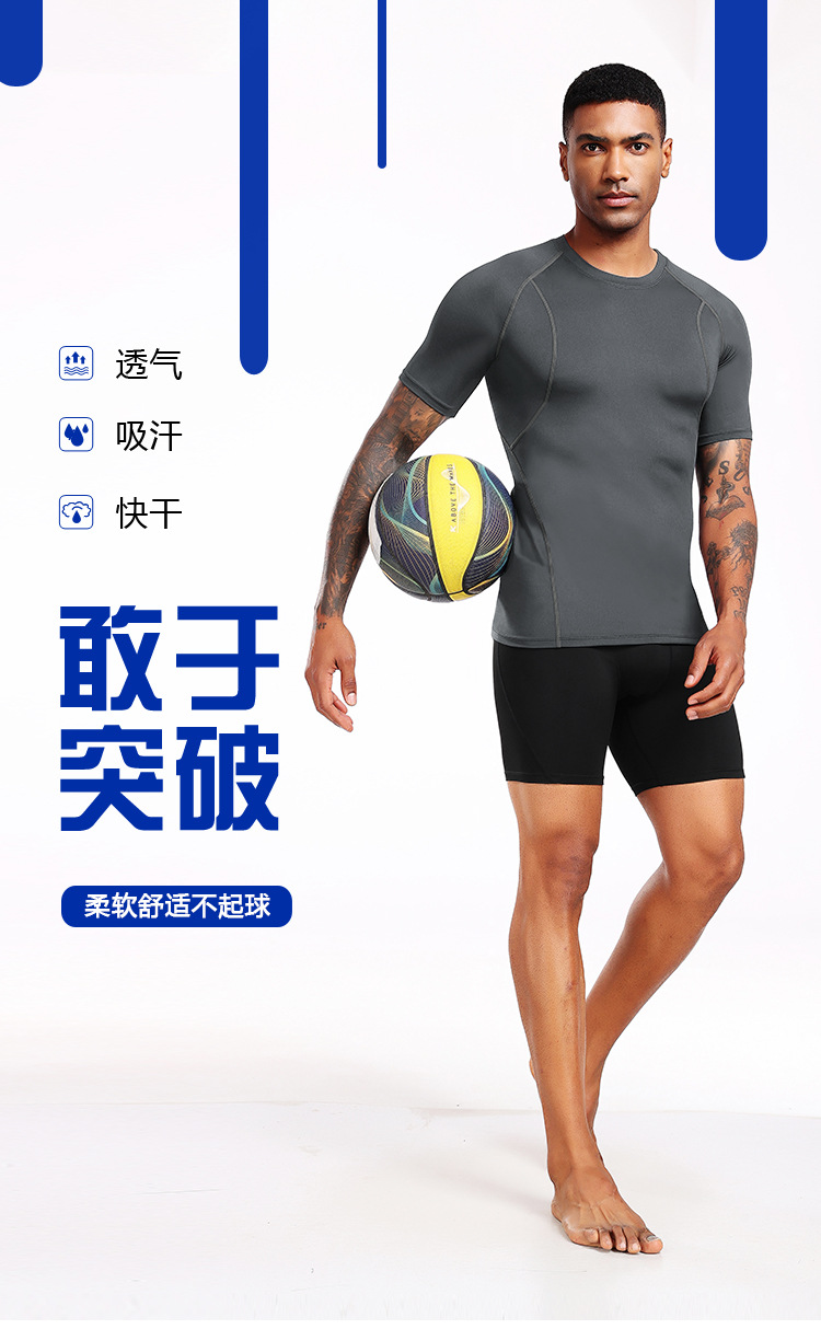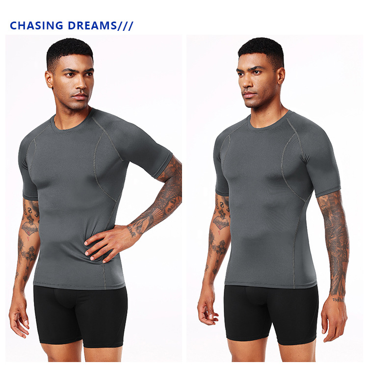 남자 신형 반팔 피트니스 세트 빠른 건조 스트레치 꽉 달리기 프로 마라톤 농구 훈련 세트