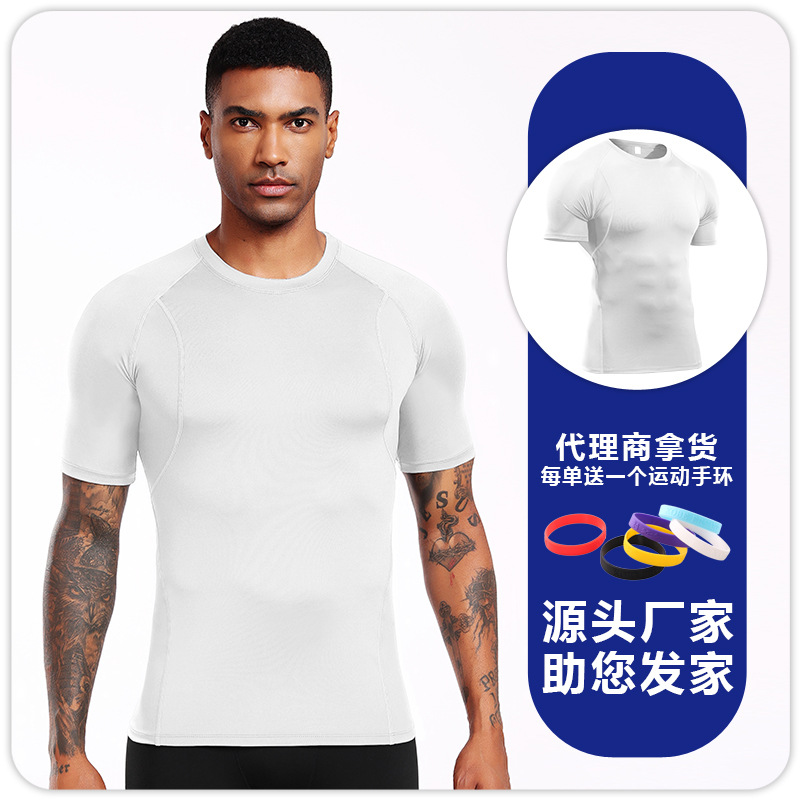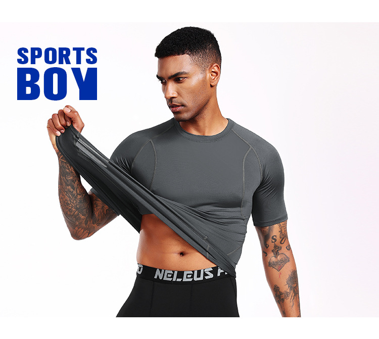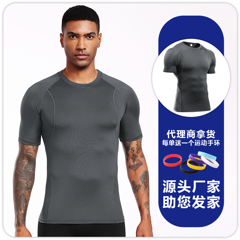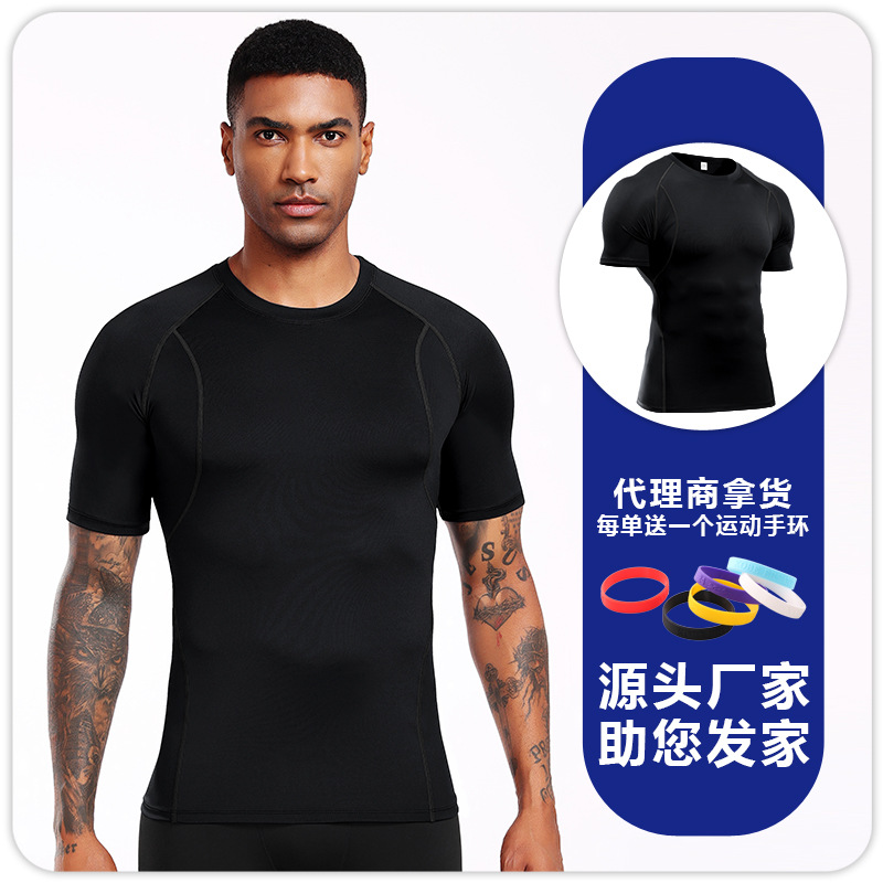 남자 신형 반팔 피트니스 세트 빠른 건조 스트레치 꽉 달리기 프로 마라톤 농구 훈련 세트스토어 가기