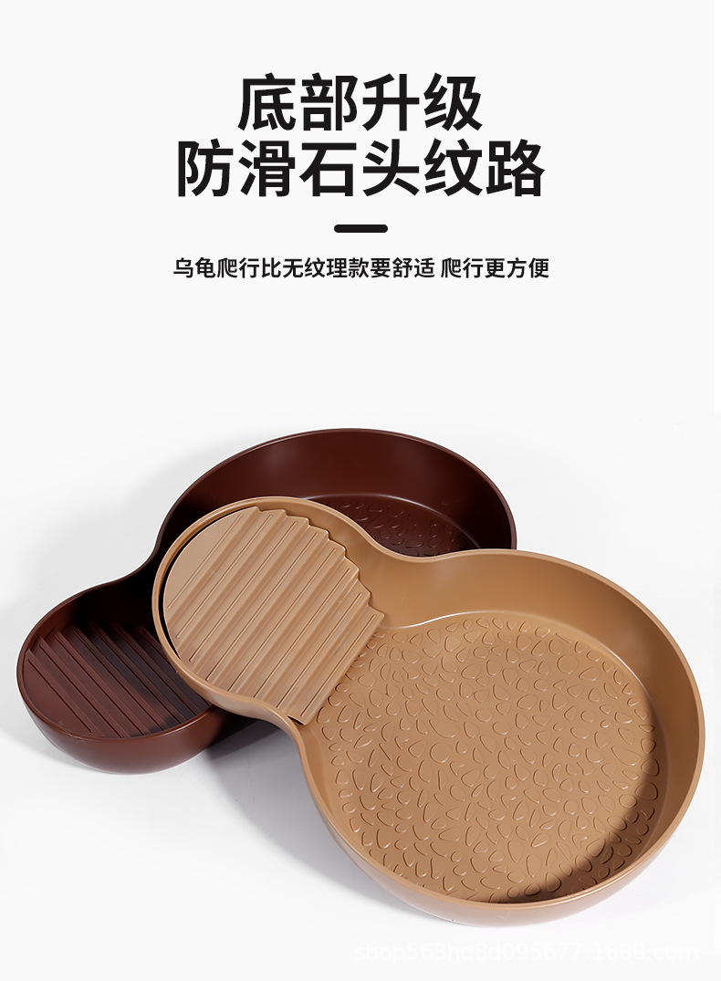 비늘 모양의 노란색 튀김 거북이 특수 물 분지 분지 분할 반수 거북이 식수 목욕 등반 애완 동물 먹이 상자 풍경