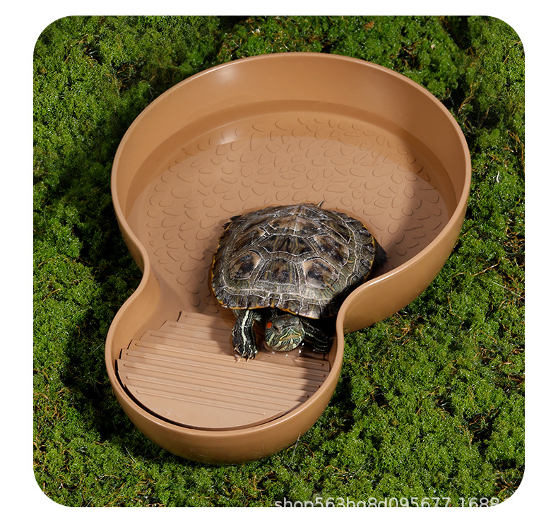 비늘 모양의 노란색 튀김 거북이 특수 물 분지 분지 분할 반수 거북이 식수 목욕 등반 애완 동물 먹이 상자 풍경스토어 가기