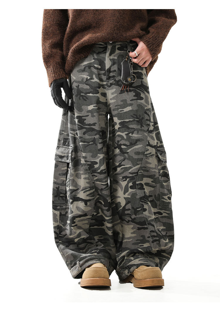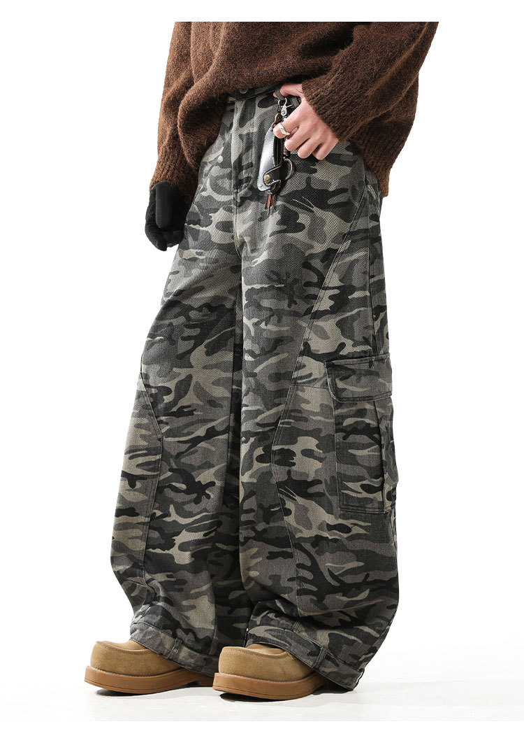 아메리칸 스타일 레트로 위장 오버롤 청바지 남성 봄과 가을 2025 패션 브랜드 느슨한 올매치 캐주얼 와이드 레그 마체테 바지스토어 가기