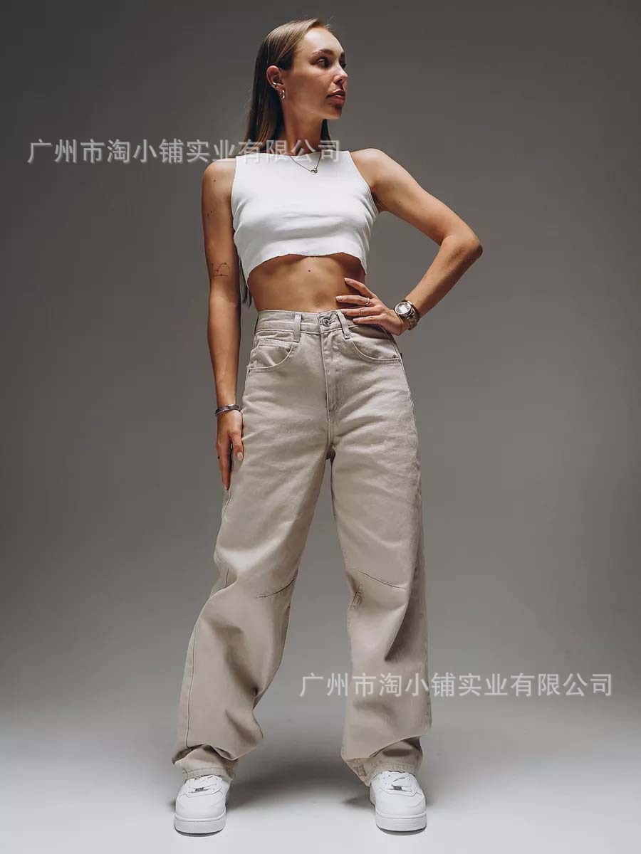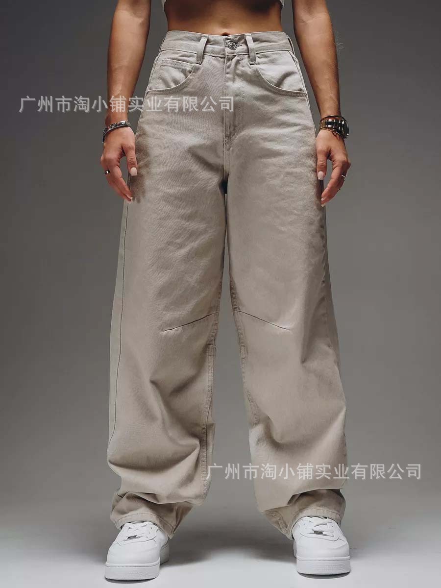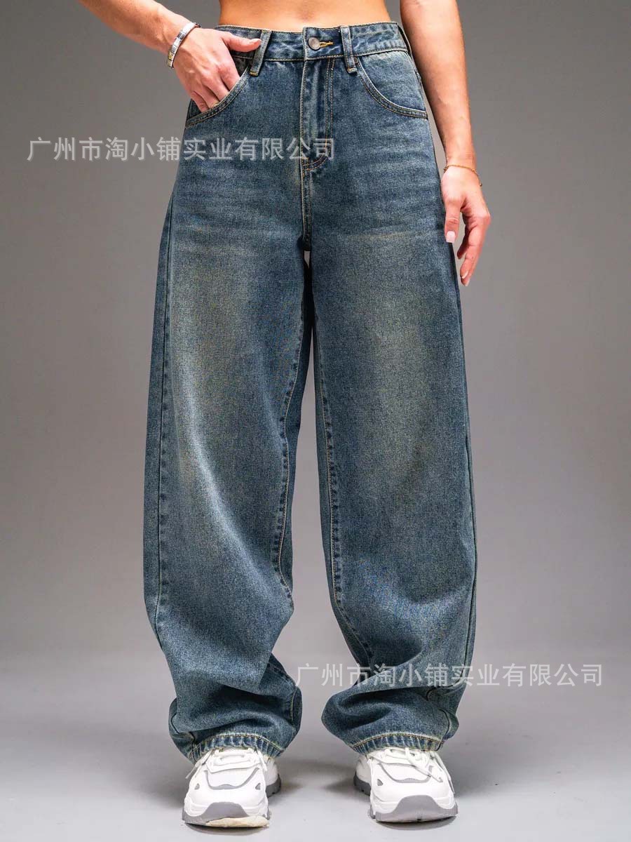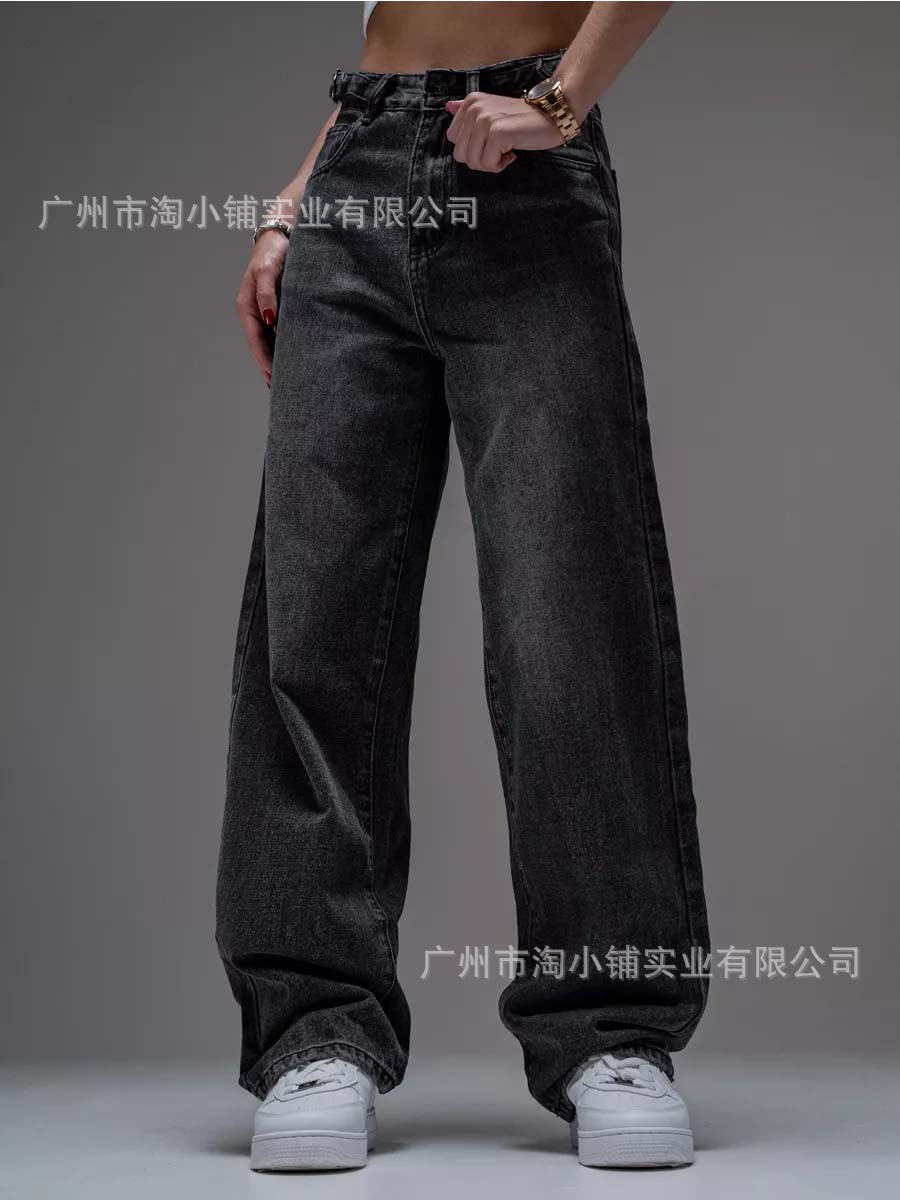2025 봄 새로운 캐주얼 바지 와이드 다리 바지 스트레이트 크로스 보더 느슨한 유행 브랜드 캐주얼 바지 여성용 청바지스토어 가기