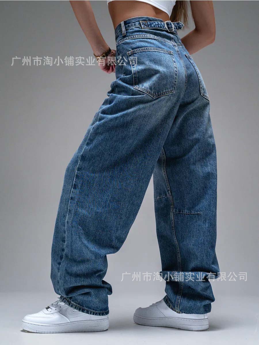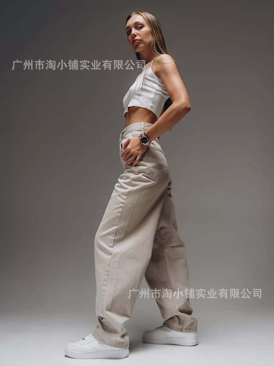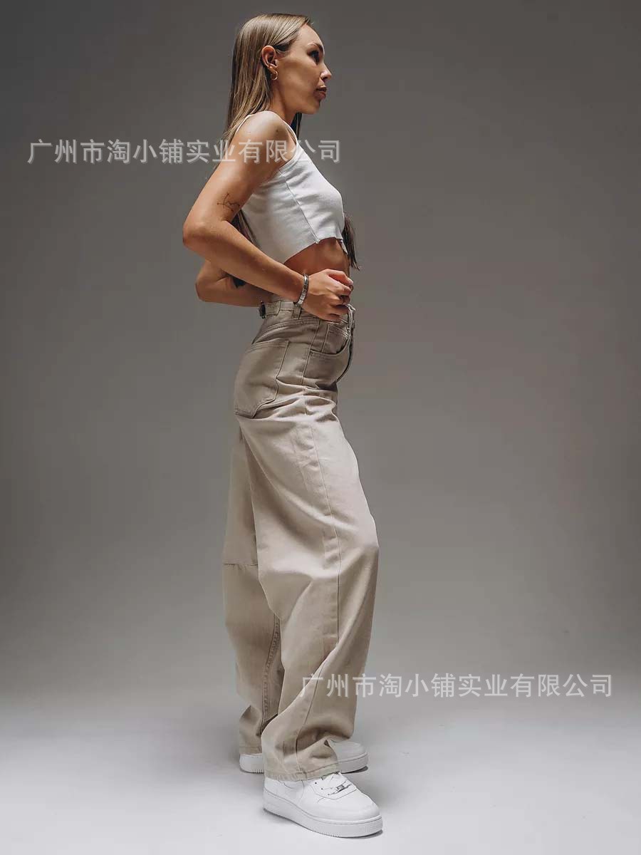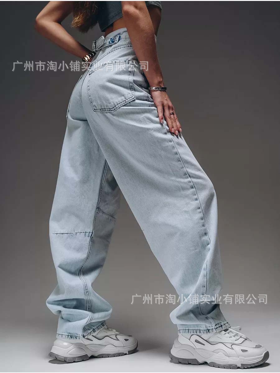 2025 봄 새로운 캐주얼 바지 와이드 다리 바지 스트레이트 크로스 보더 느슨한 유행 브랜드 캐주얼 바지 여성용 청바지스토어 가기
