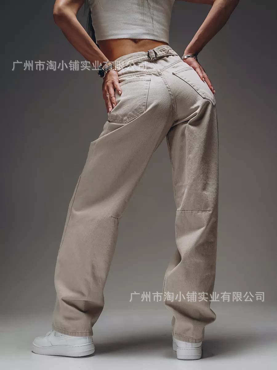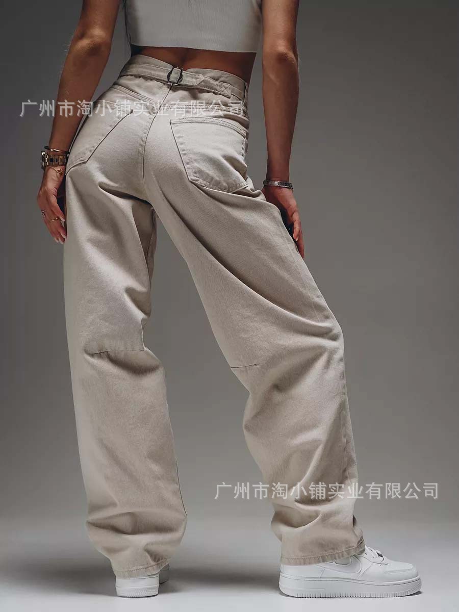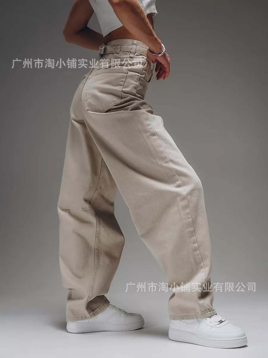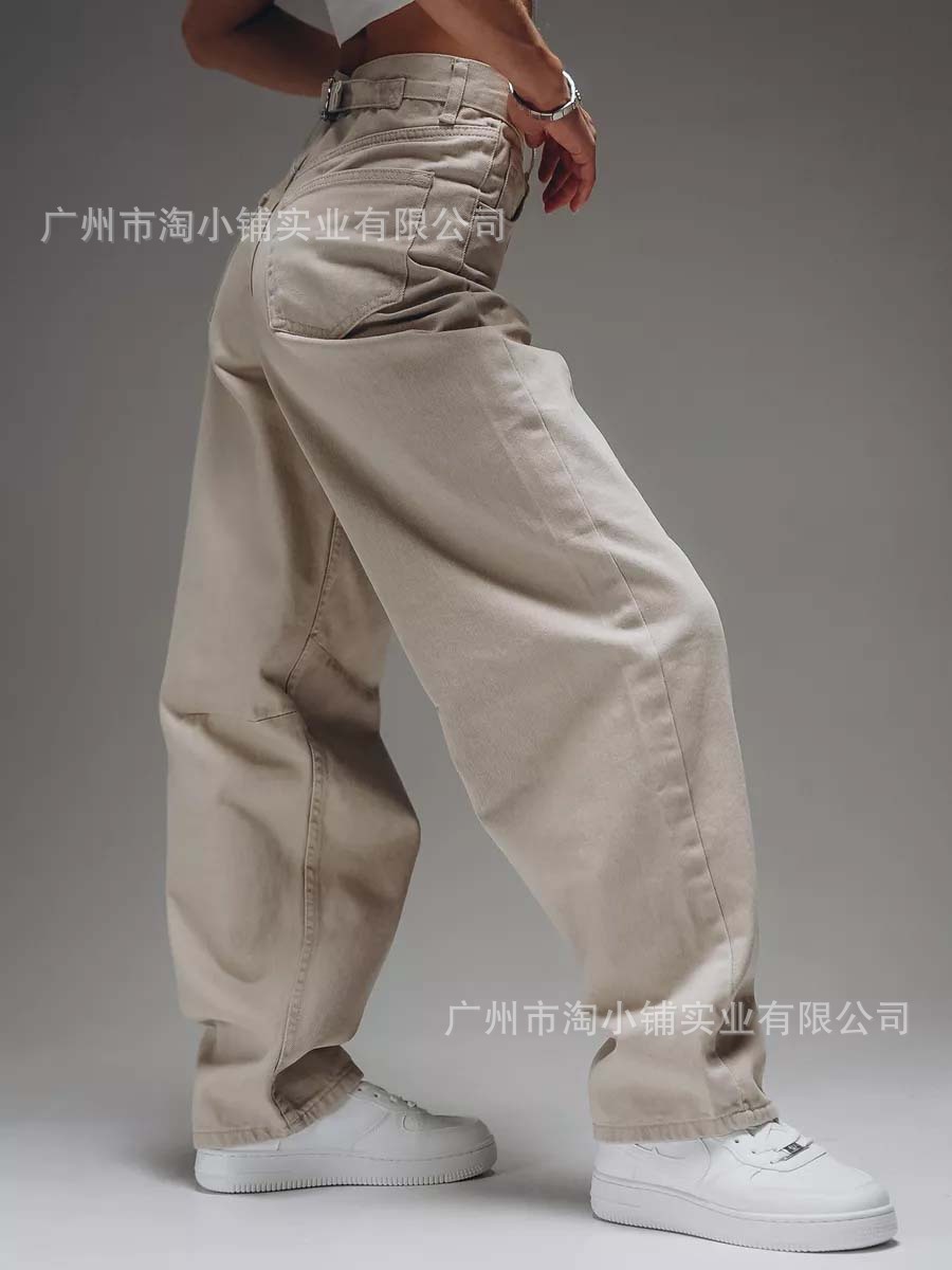 2025 봄 새로운 캐주얼 바지 와이드 다리 바지 스트레이트 크로스 보더 느슨한 유행 브랜드 캐주얼 바지 여성용 청바지스토어 가기