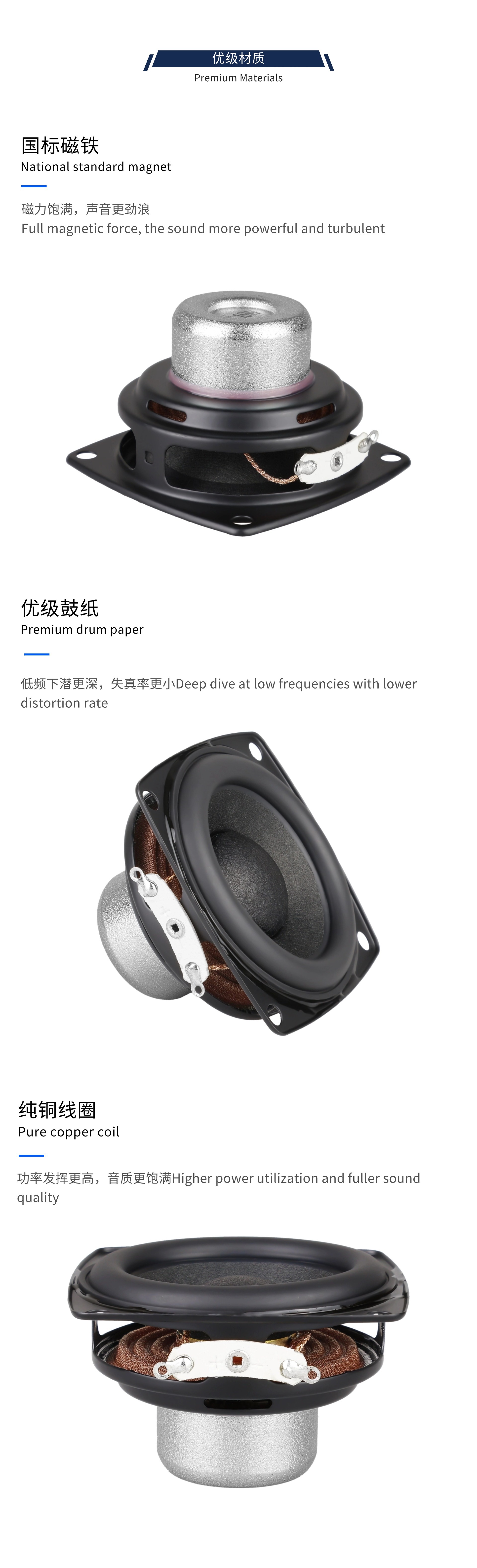 57mm 2.25inch 베이스 스피커 4옴 15W 듀얼 네오디뮴 자석 19코어 알루미늄 튜브 보이스 코일 고무 엣지 롱 스트로크 스피커스토어 가기