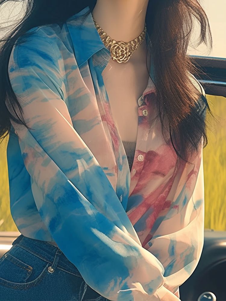 홍콩 스타일 세련된 긴 소매 셔츠 여성 디자인 센스 틈새 여름 새로운 독특한 세련된 스파이스 소녀 느슨한 탑스토어 가기