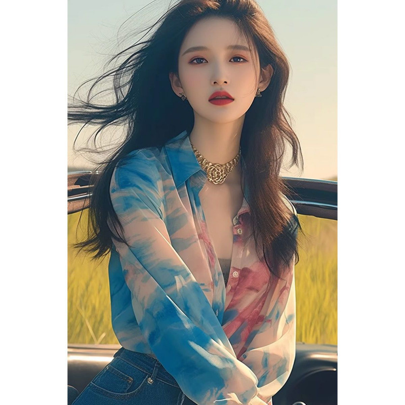 홍콩 스타일 세련된 긴 소매 셔츠 여성 디자인 센스 틈새 여름 새로운 독특한 세련된 스파이스 소녀 느슨한 탑