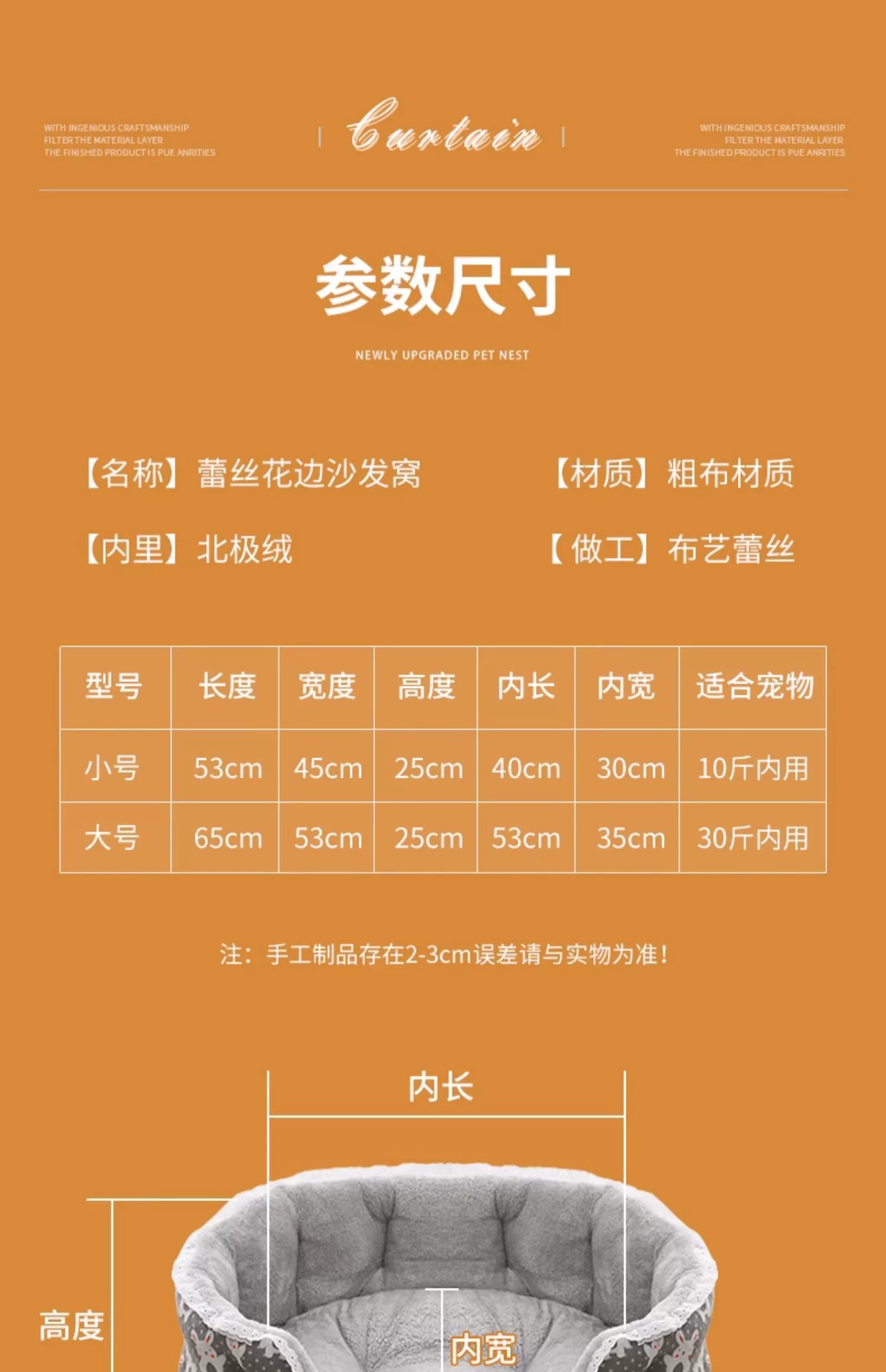 Kennel Winter Warm Sofa Kennel Pet Kennel Four Seasons Universal Soft Kennel Windproof High Wai Cat Kennel Dog 및 Cat Kennel Pad스토어 가기