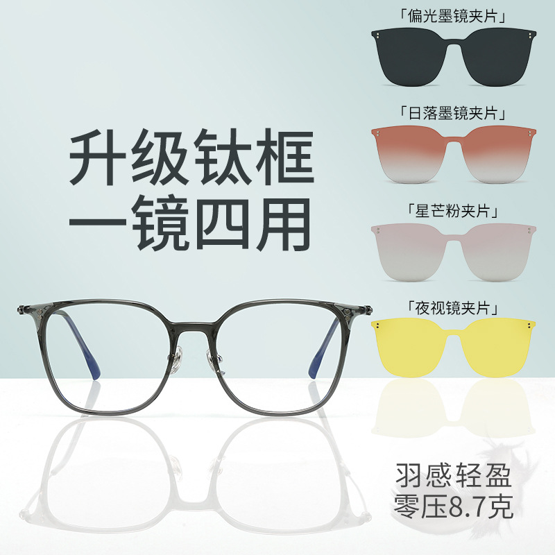 남성과 여성을 위한 자석 편광 선글라스, 일반 얼굴, 소근시, 청색광 차단 및 자외선 차단 안경, 초경량 티타늄 프레임