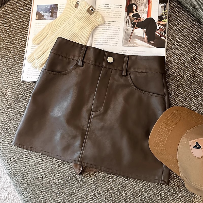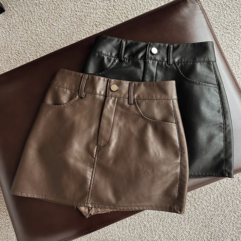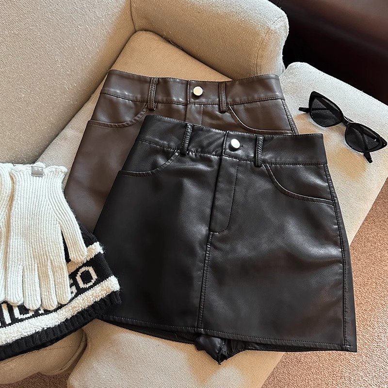 검은 높은 허리 PU 스커트 2023 가을과 겨울 새로운 스타일 작은 짧은 치마 슬리밍 스파이스 소녀 스커트 A-라인 힙합 스커트스토어 가기
