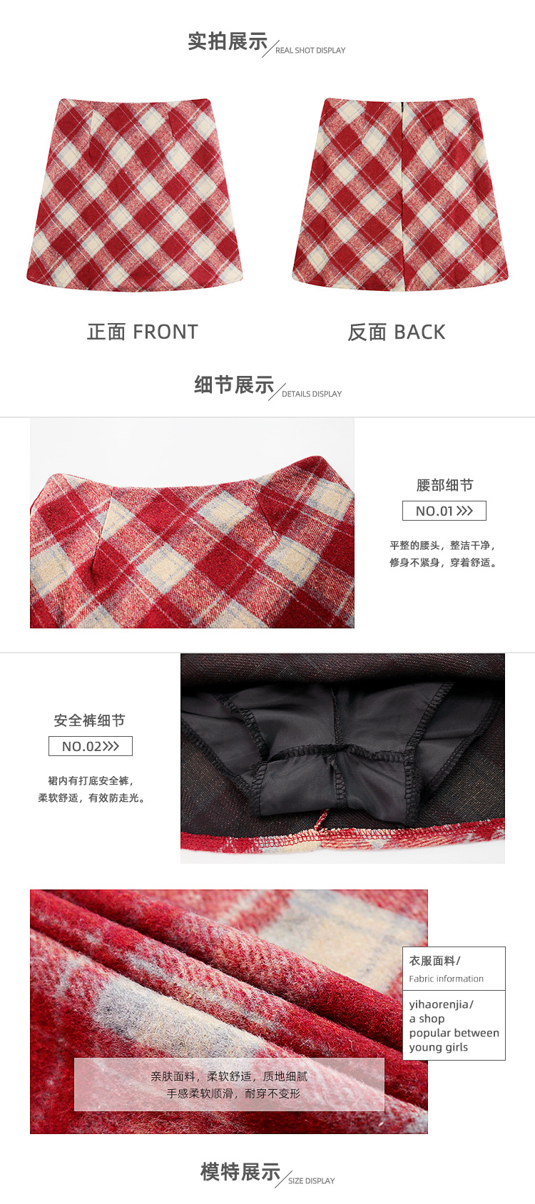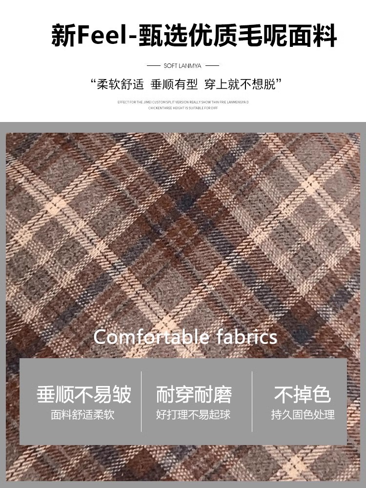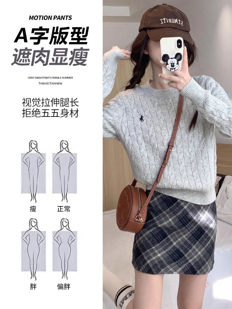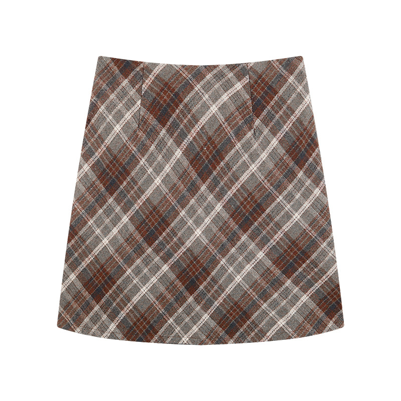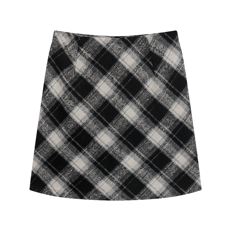 회색 모직 격자 무늬 스커트 여성의 가을과 겨울 2024 새로운 높은 허리 A-라인 엉덩이 스커트 작은 슬리밍 스커트스토어 가기