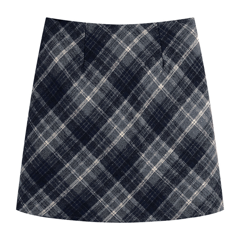 회색 모직 격자 무늬 스커트 여성의 가을과 겨울 2024 새로운 높은 허리 A-라인 엉덩이 스커트 작은 슬리밍 스커트