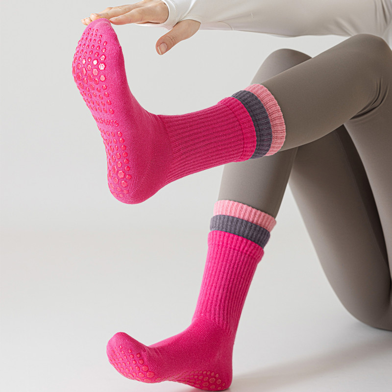 컬러 매칭 요가 양말 분배 비 슬립 전문 미드 튜브 양말 여성 피트니스 스타킹 특수 안티 드롭 튜브 필라테스 양말스토어 가기