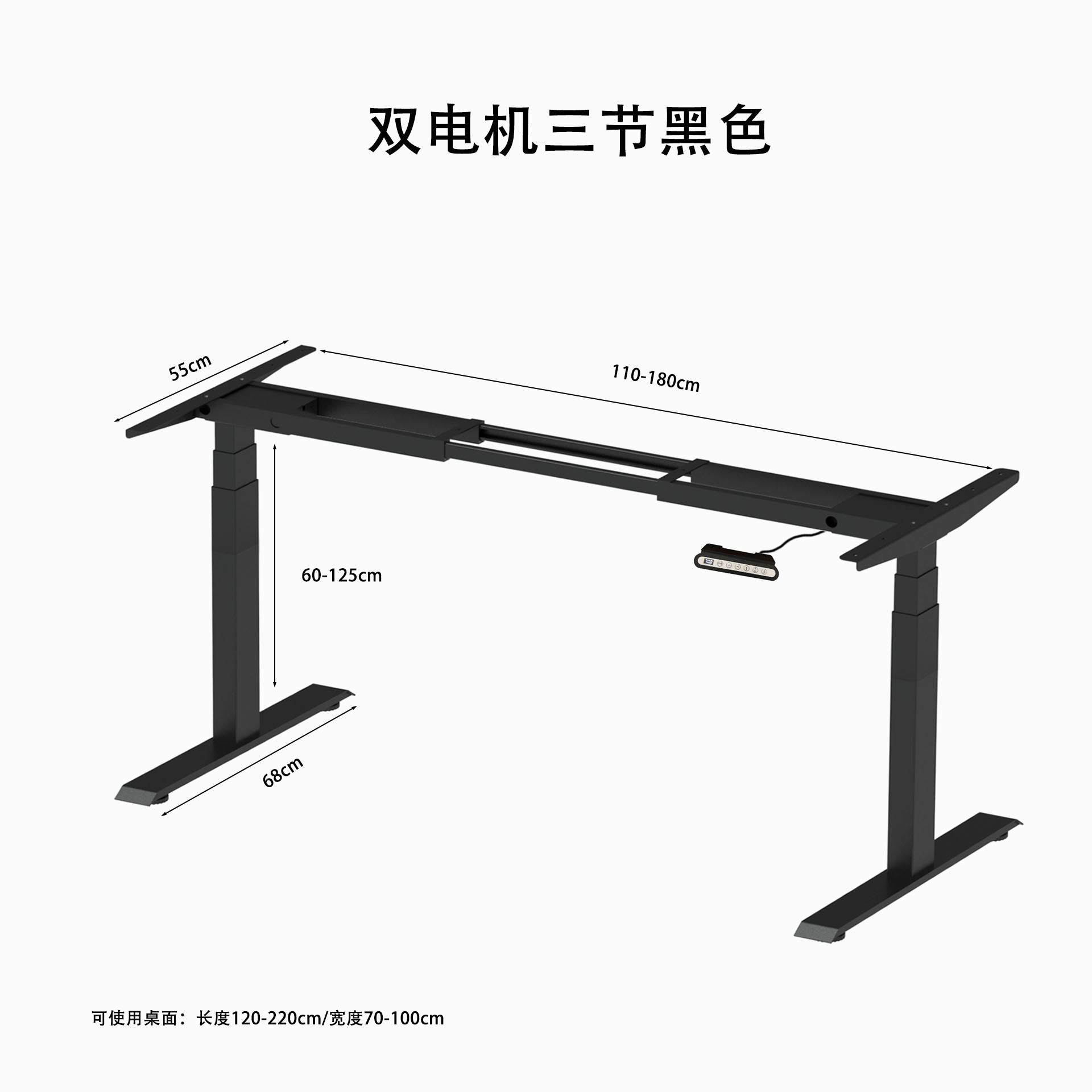 • 블랙 듀얼 모터 3섹션 리프팅 테이블 스탠드(높이 60-125cm)