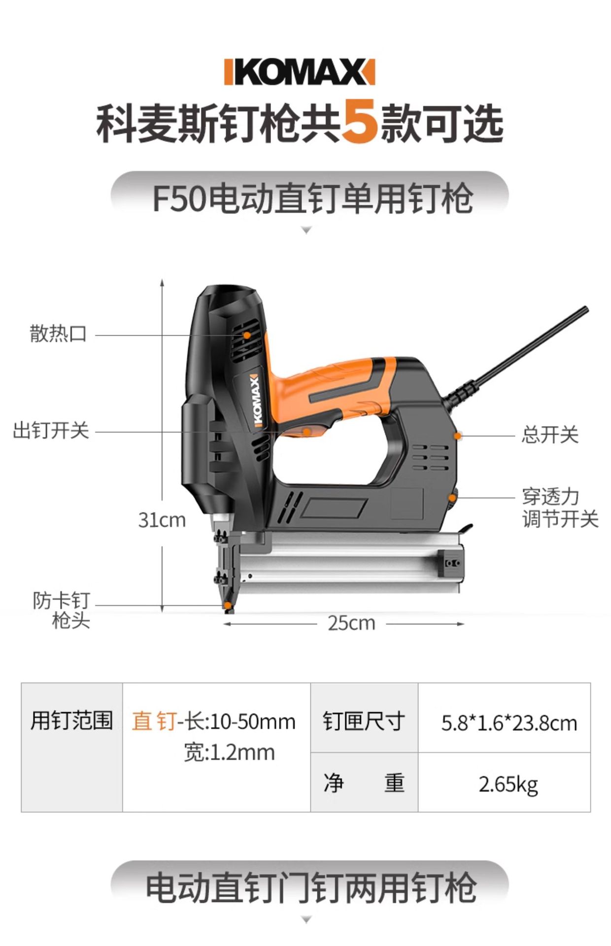 • F50 전기 직선 손톱 일회용 손톱 총