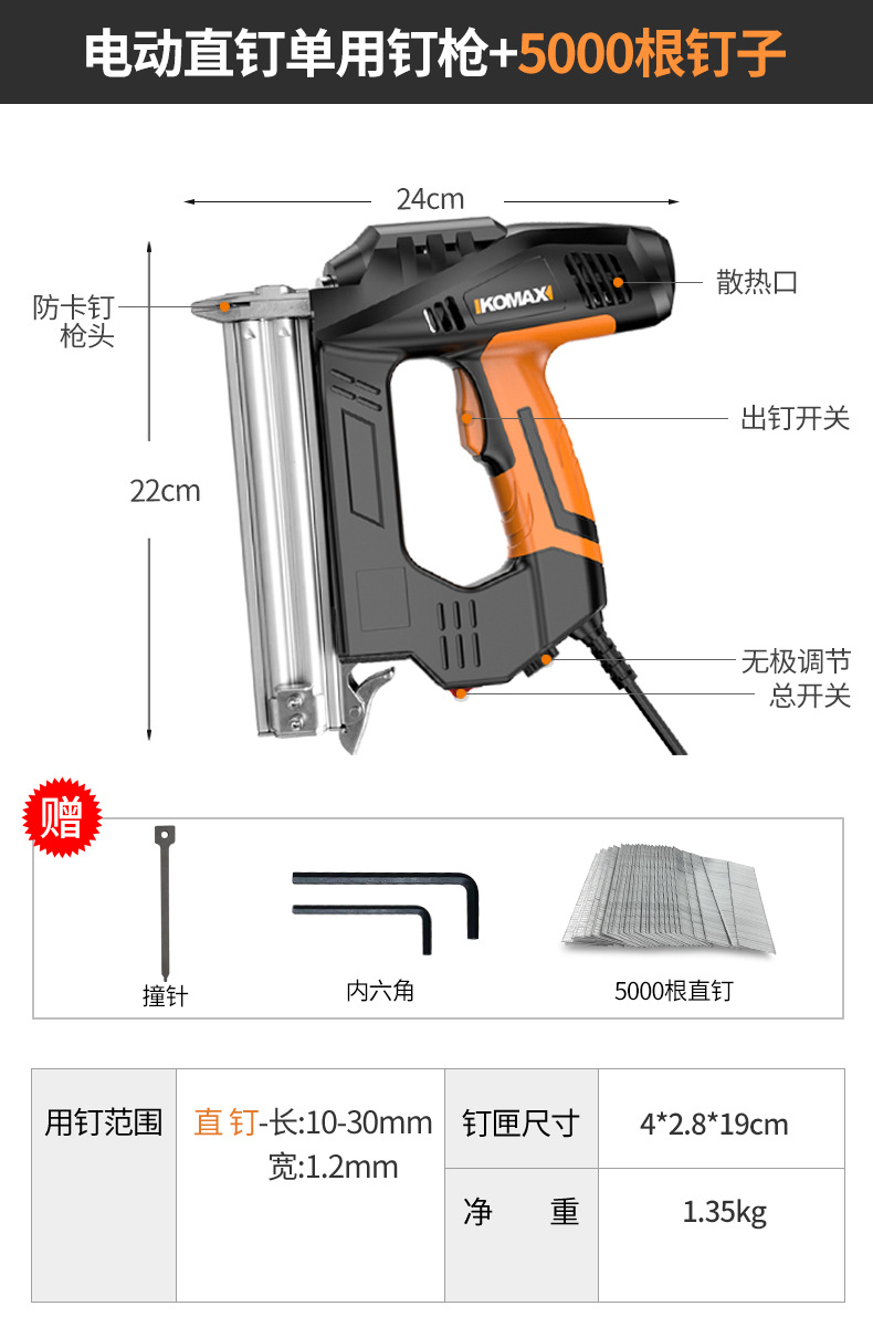• 전동 스트레이트 네일 일회용 네일건 + 못 5000개