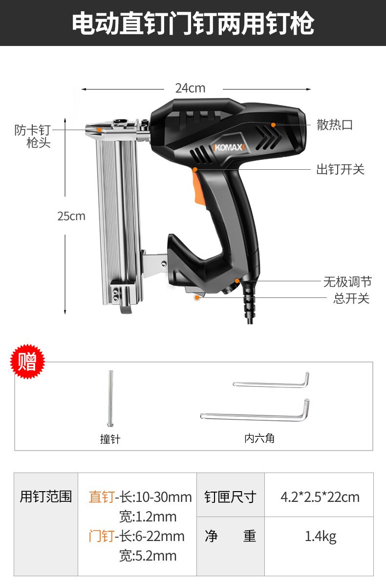 전기 네일 건 스트레이트 네일 도어 네일 이중 목적 코드 네일 그랩 목공 도구 에어 네일 건 스틸 네일 건 도매스토어 가기