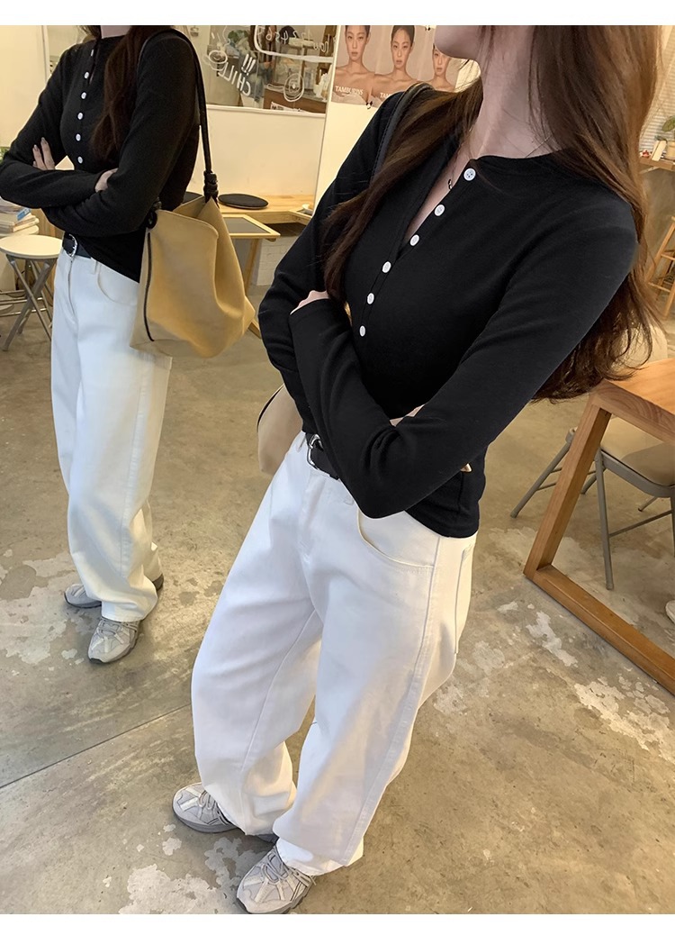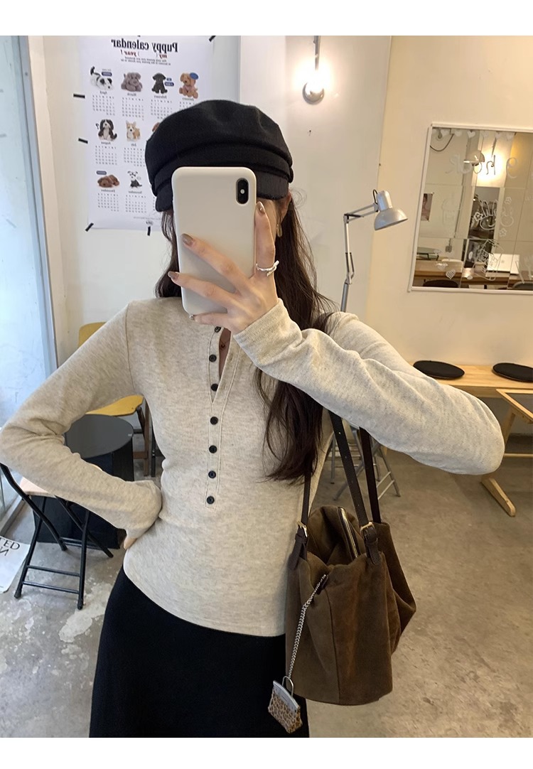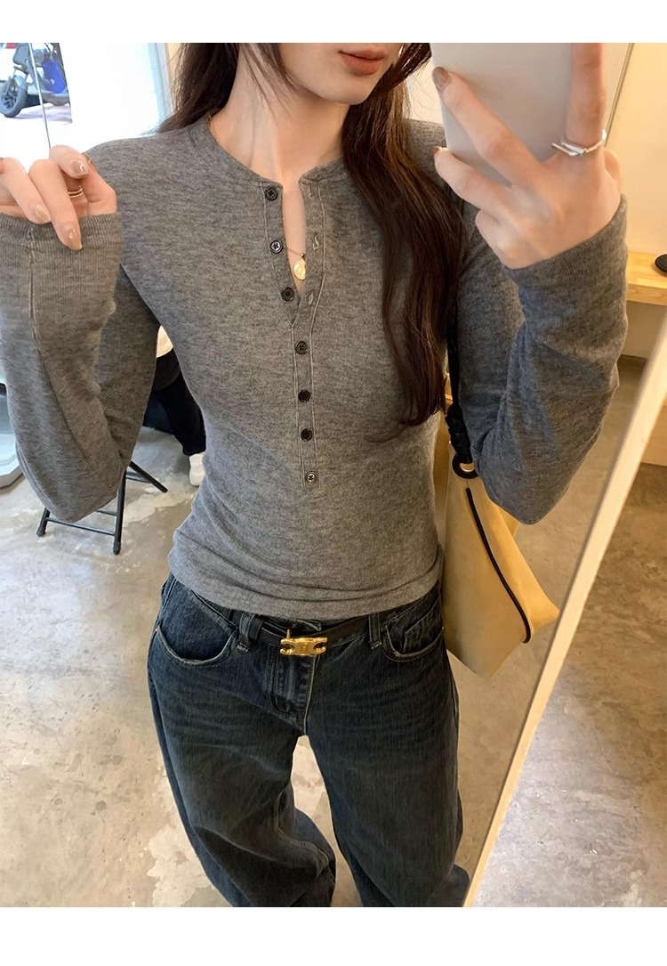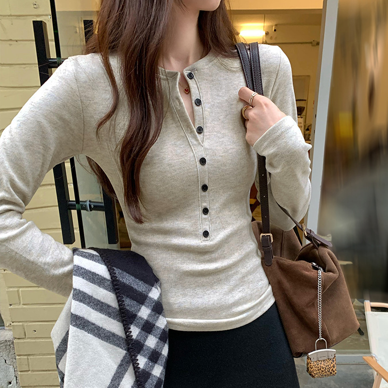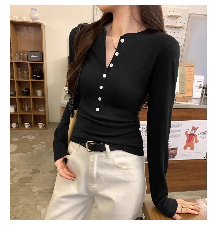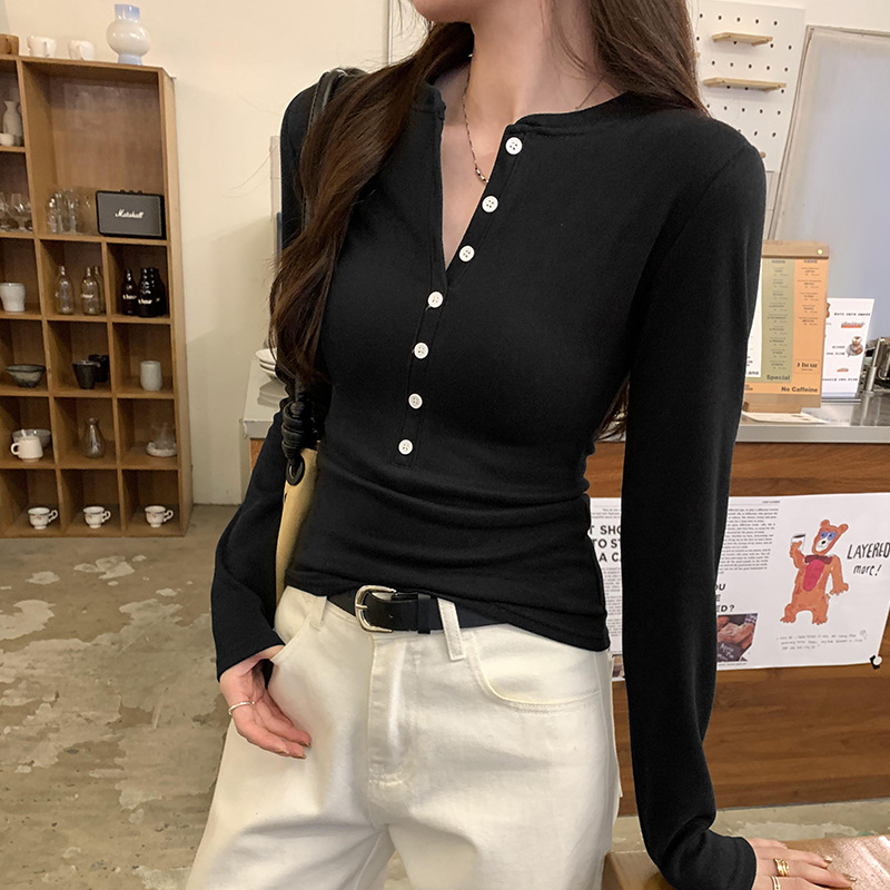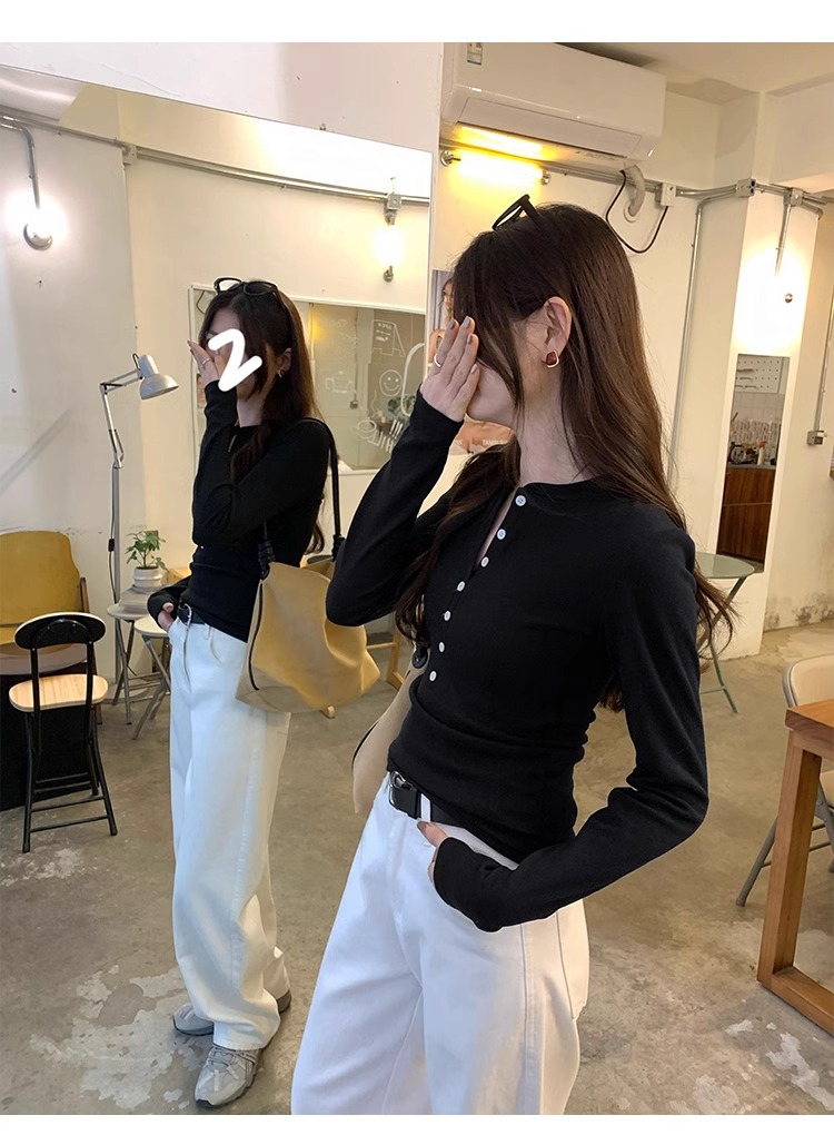 American Spice Girls, 하프 오픈 칼라 티셔츠 조심하세요 여성용 2025 봄 슬림핏 순수 욕망 쇼트탑 베이스 셔츠스토어 가기