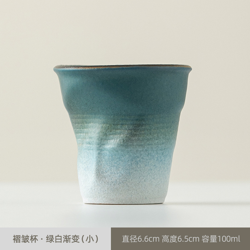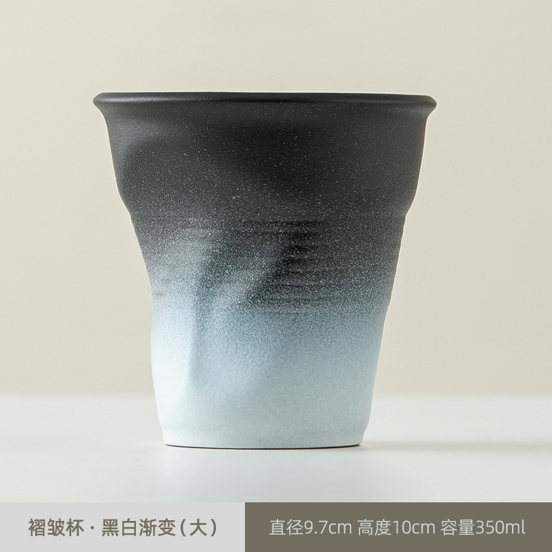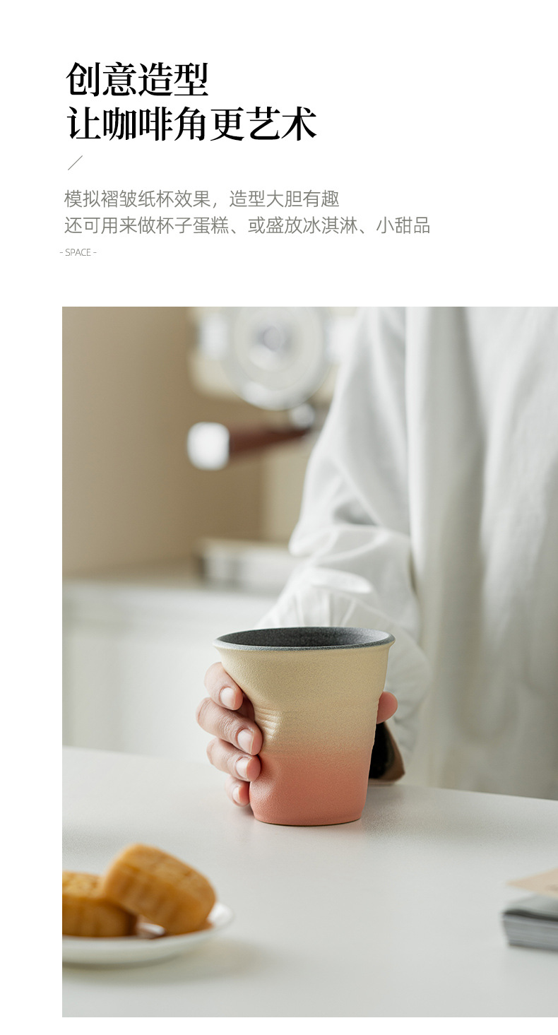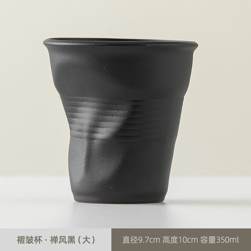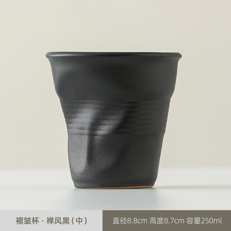 빈티지 커피 컵 수제 주름 컵 핸드 헬드 워터 컵 커피 컵 세라믹 종이 컵 창조적 인 국경 로고스토어 가기