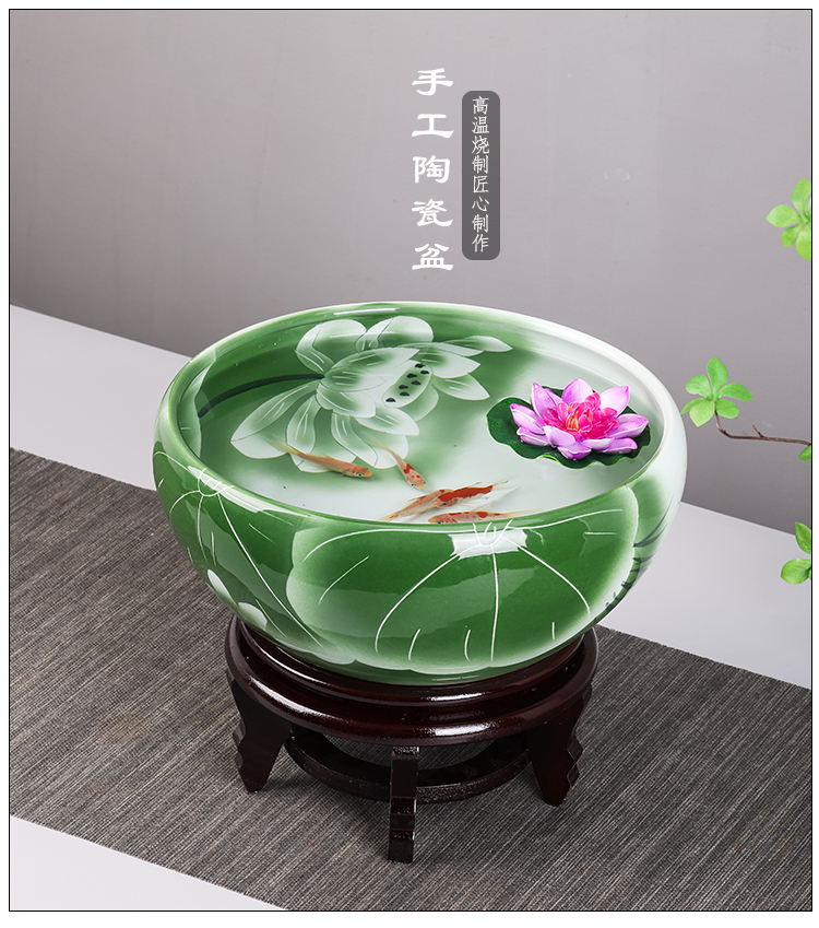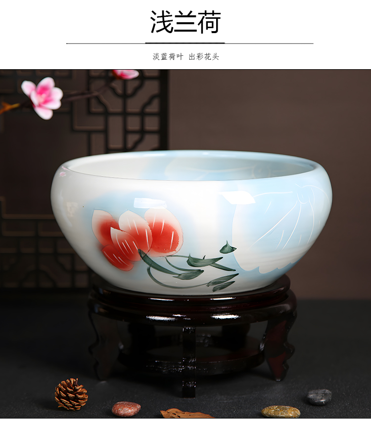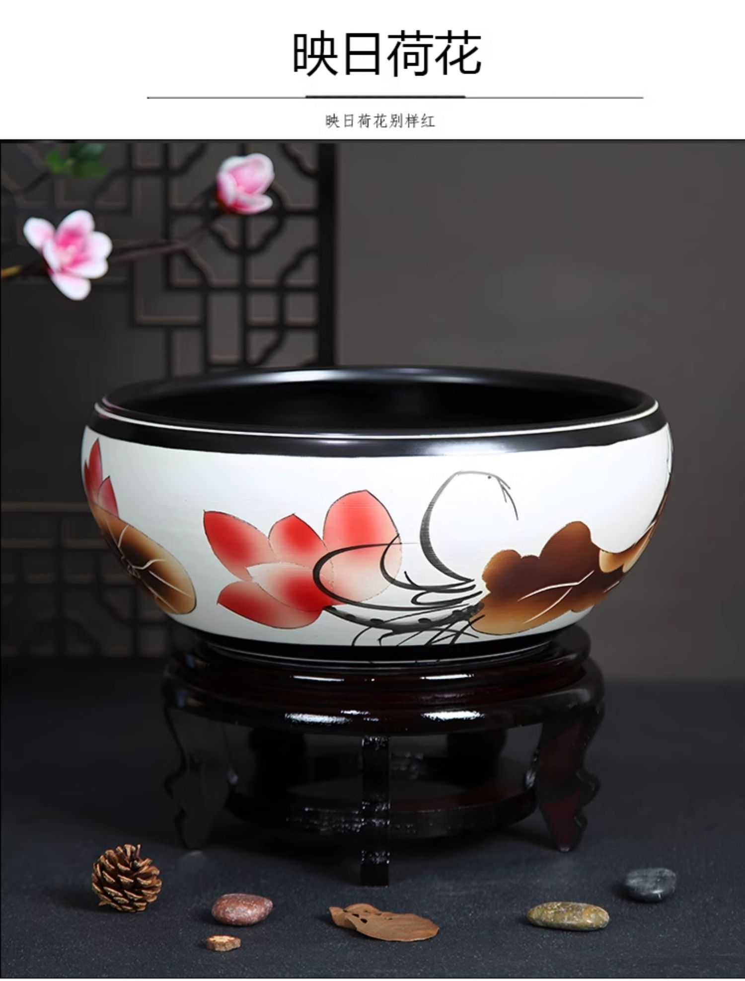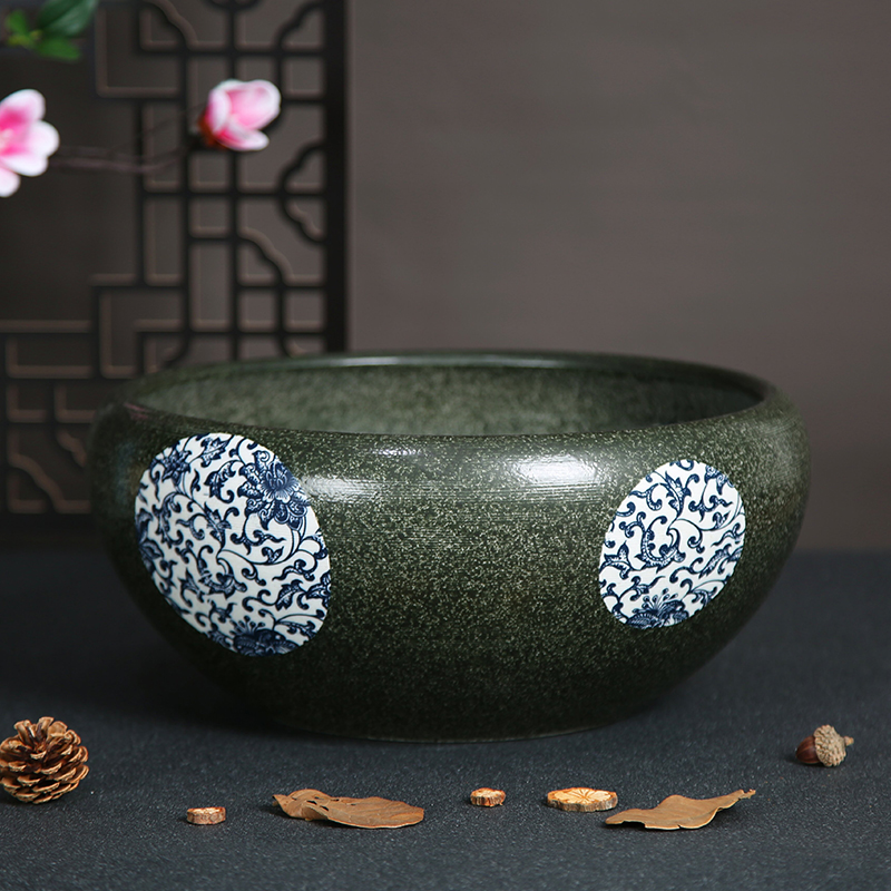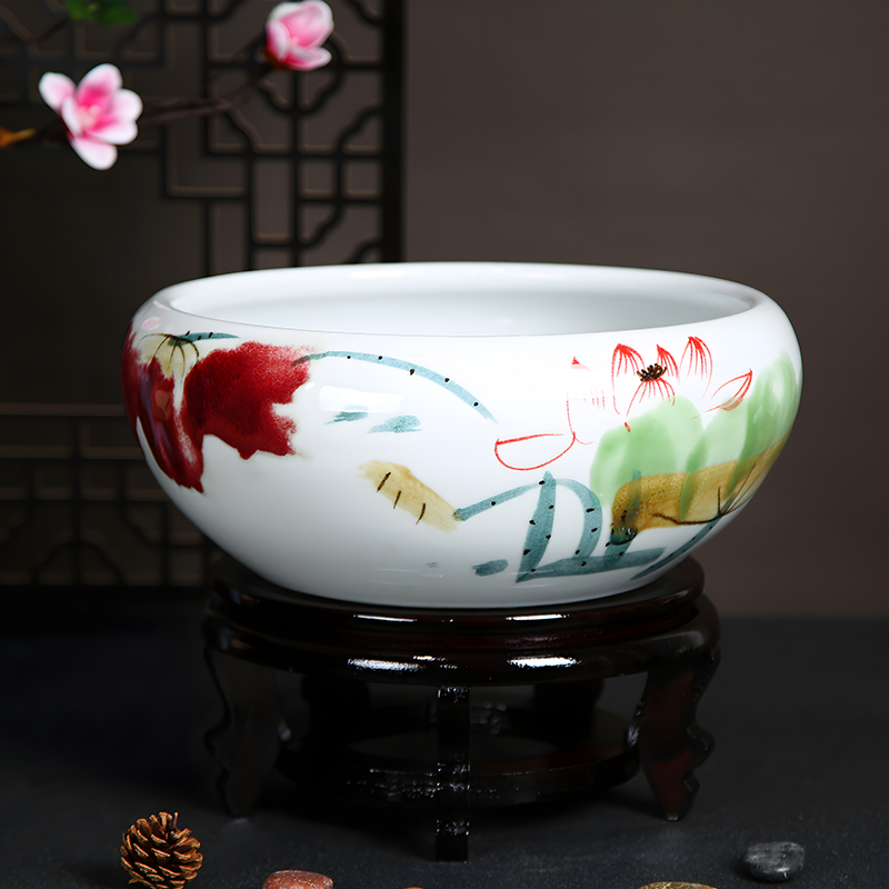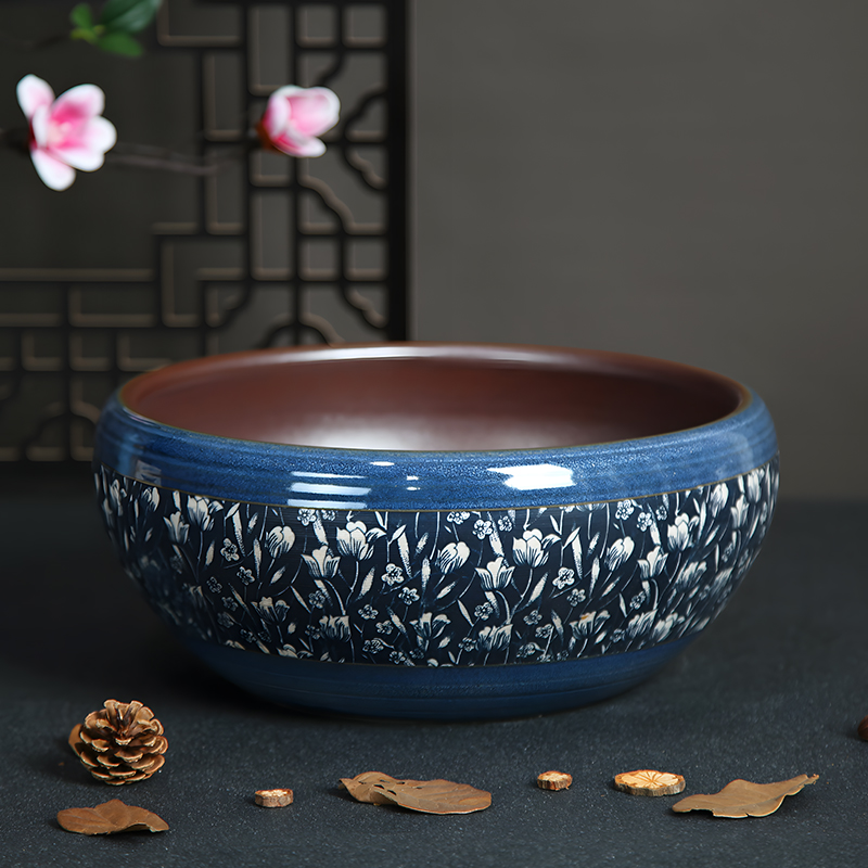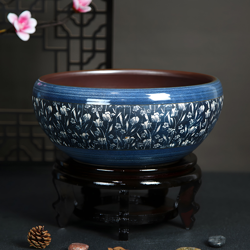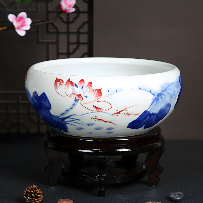 Jingdezhen 세라믹 화분 파란색과 흰색 도자기 연꽃 냄비 물고기 탱크 수련 탱크 오픈 분재 그릇 연꽃 탱크