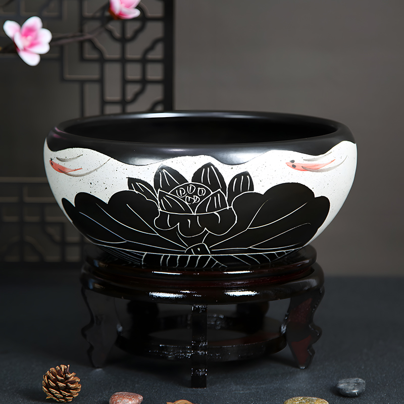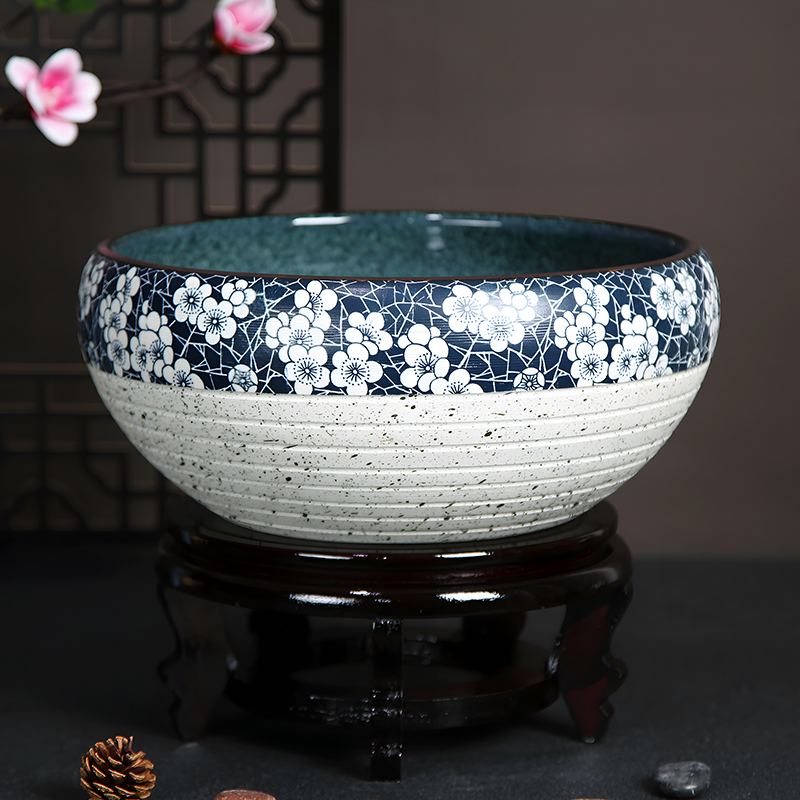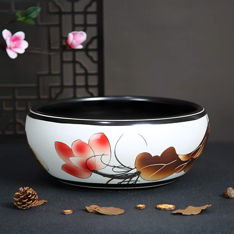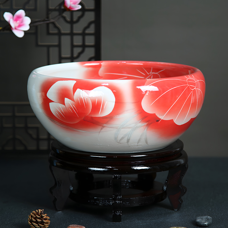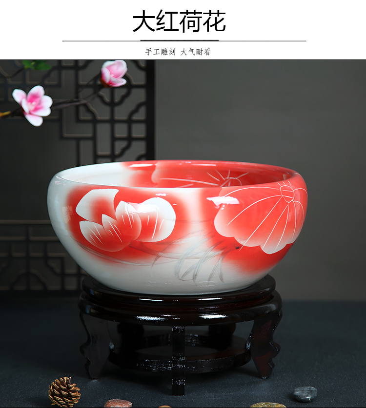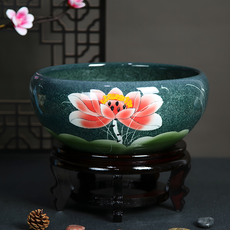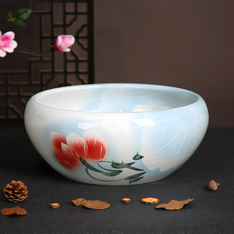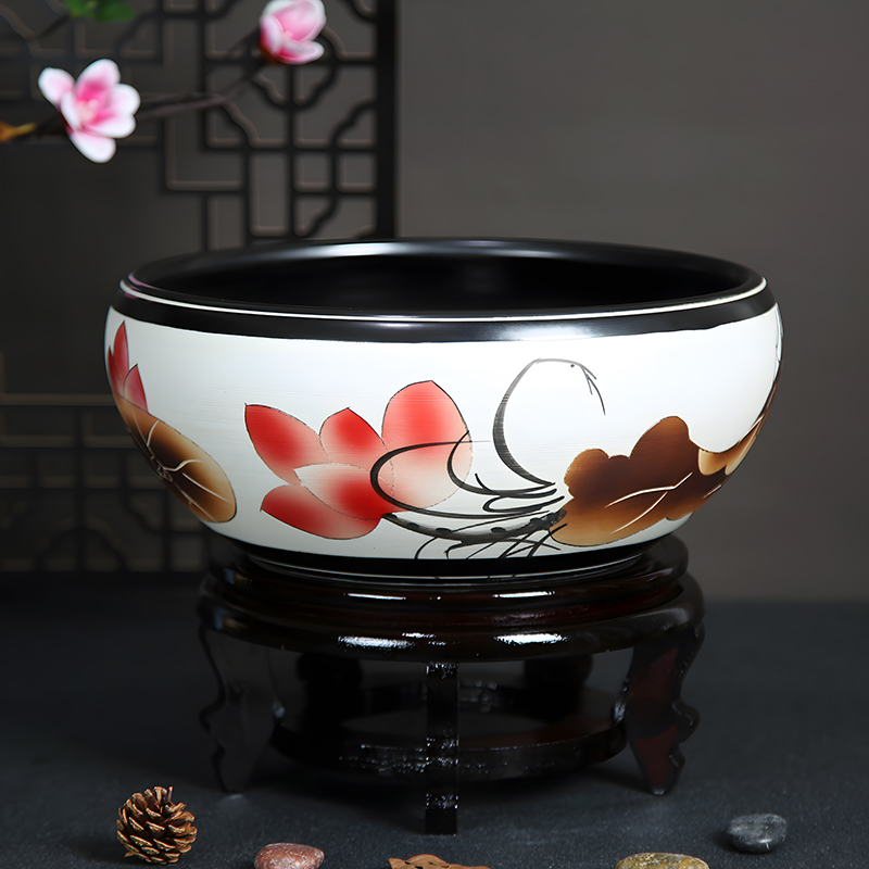 Jingdezhen 세라믹 화분 파란색과 흰색 도자기 연꽃 냄비 물고기 탱크 수련 탱크 오픈 분재 그릇 연꽃 탱크