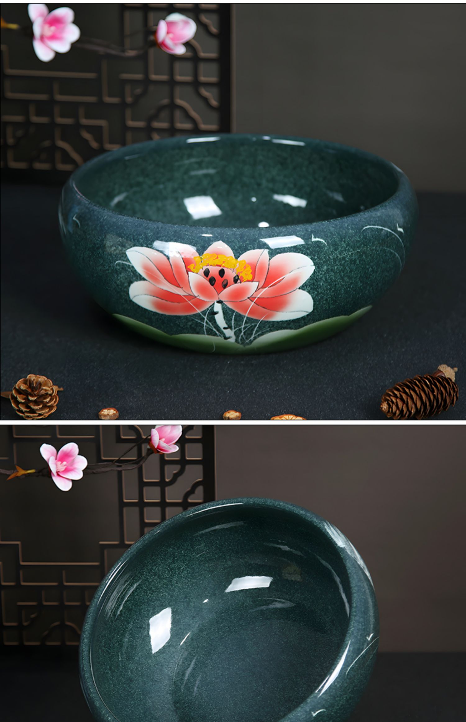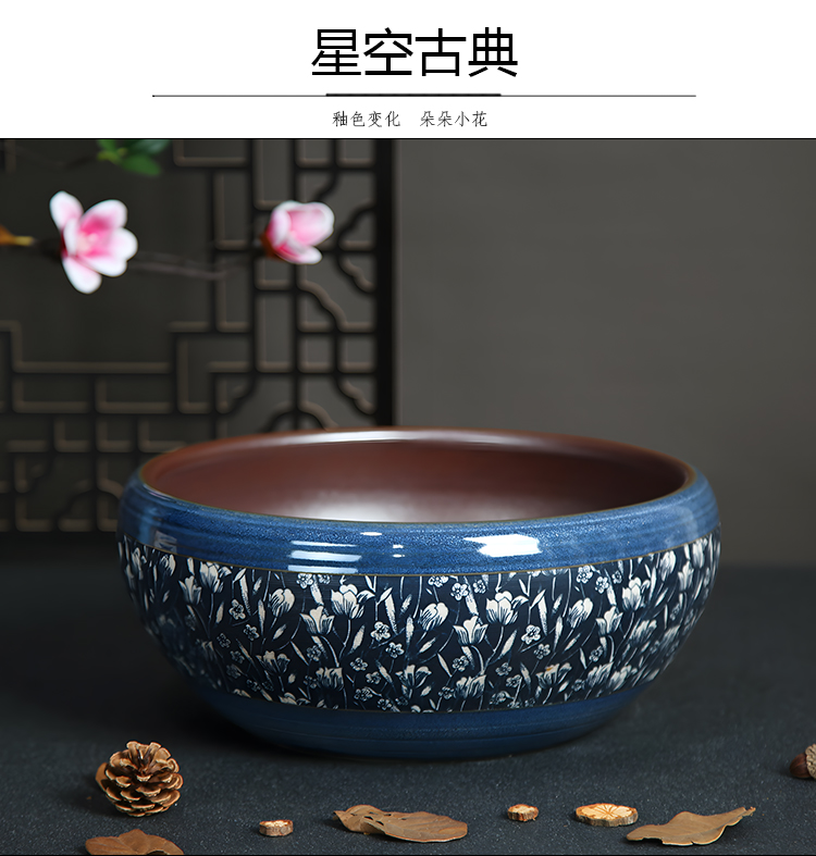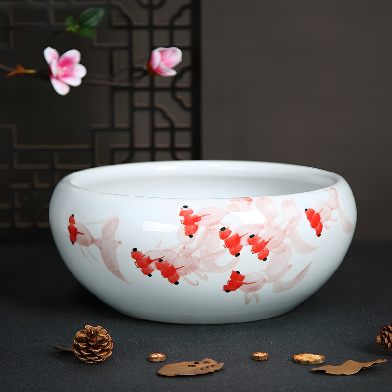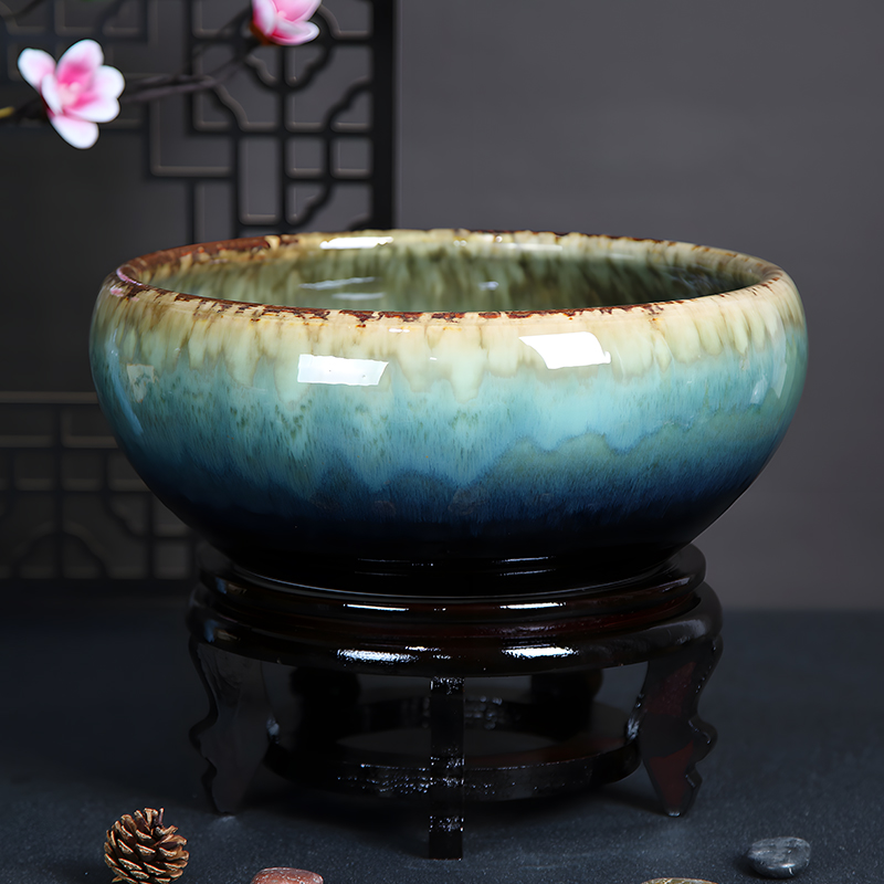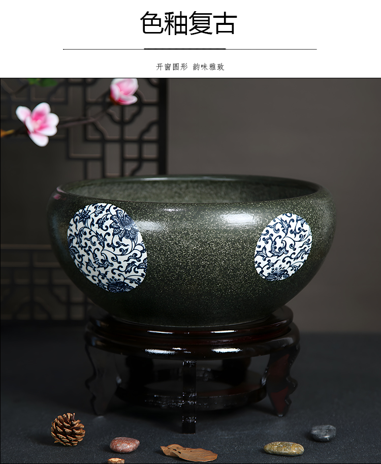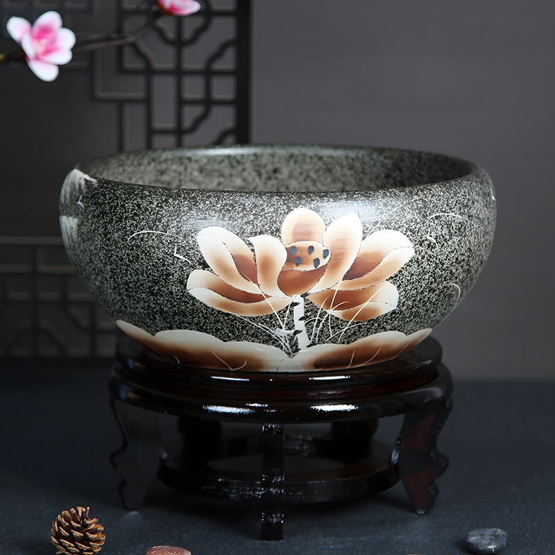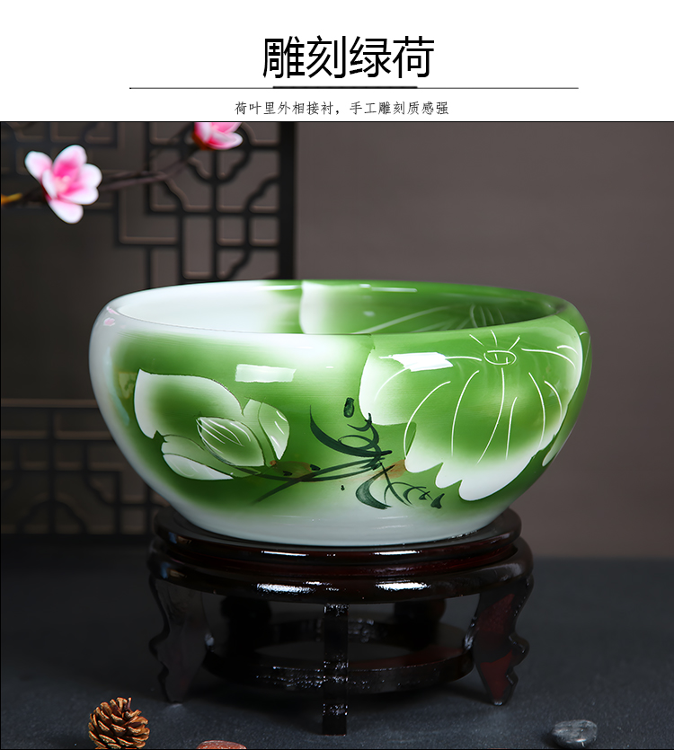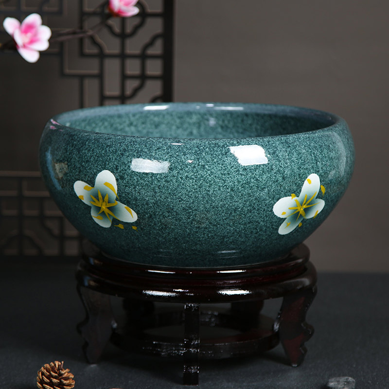 Jingdezhen 세라믹 화분 파란색과 흰색 도자기 연꽃 냄비 물고기 탱크 수련 탱크 오픈 분재 그릇 연꽃 탱크