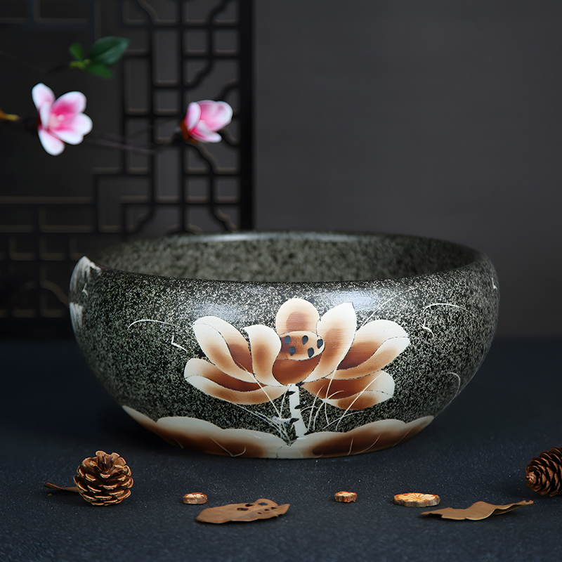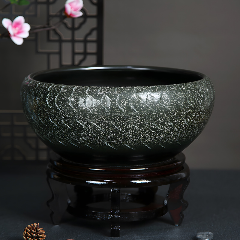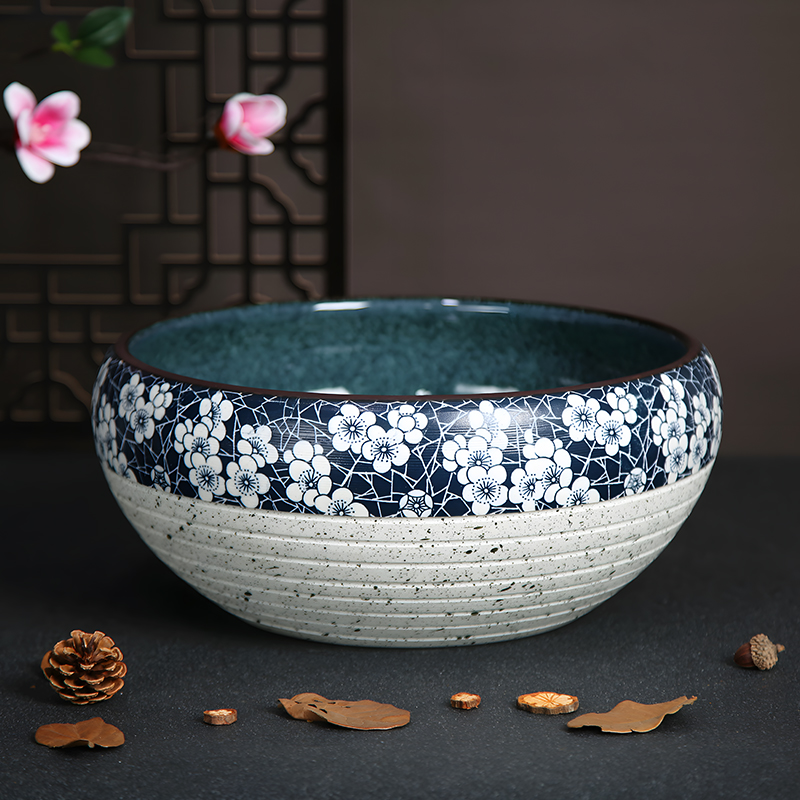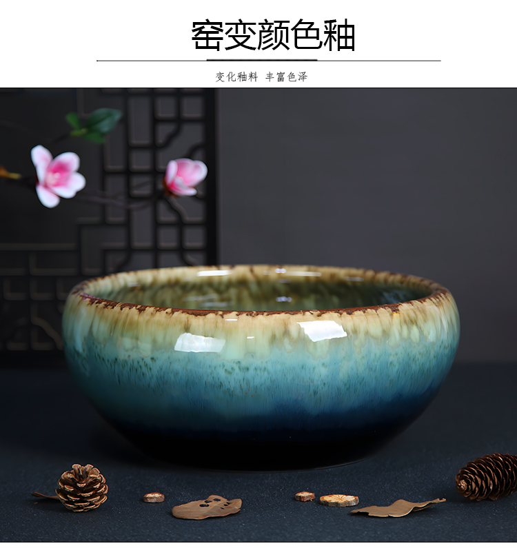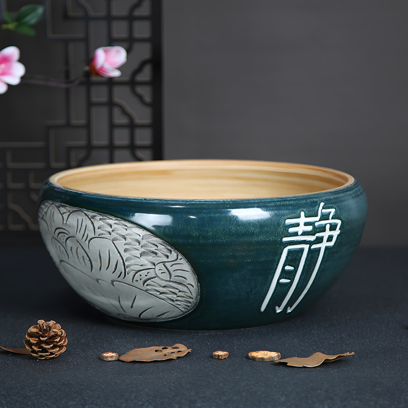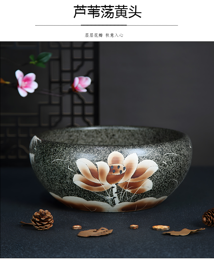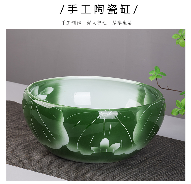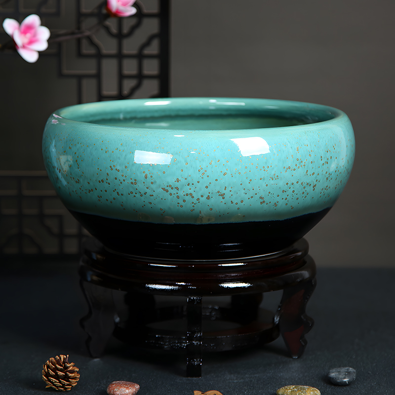 Jingdezhen 세라믹 화분 파란색과 흰색 도자기 연꽃 냄비 물고기 탱크 수련 탱크 오픈 분재 그릇 연꽃 탱크