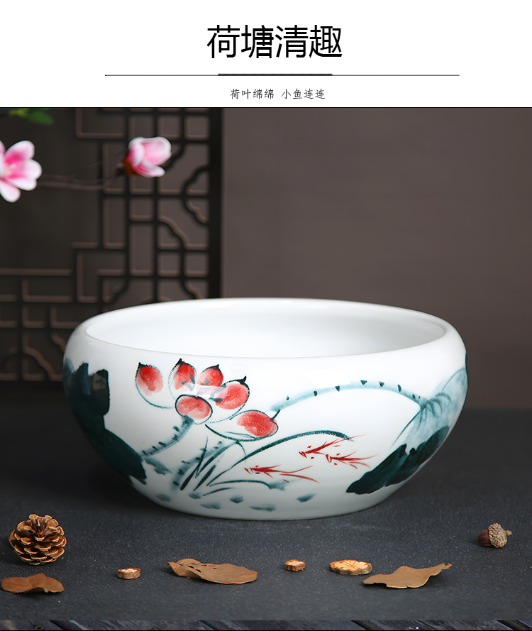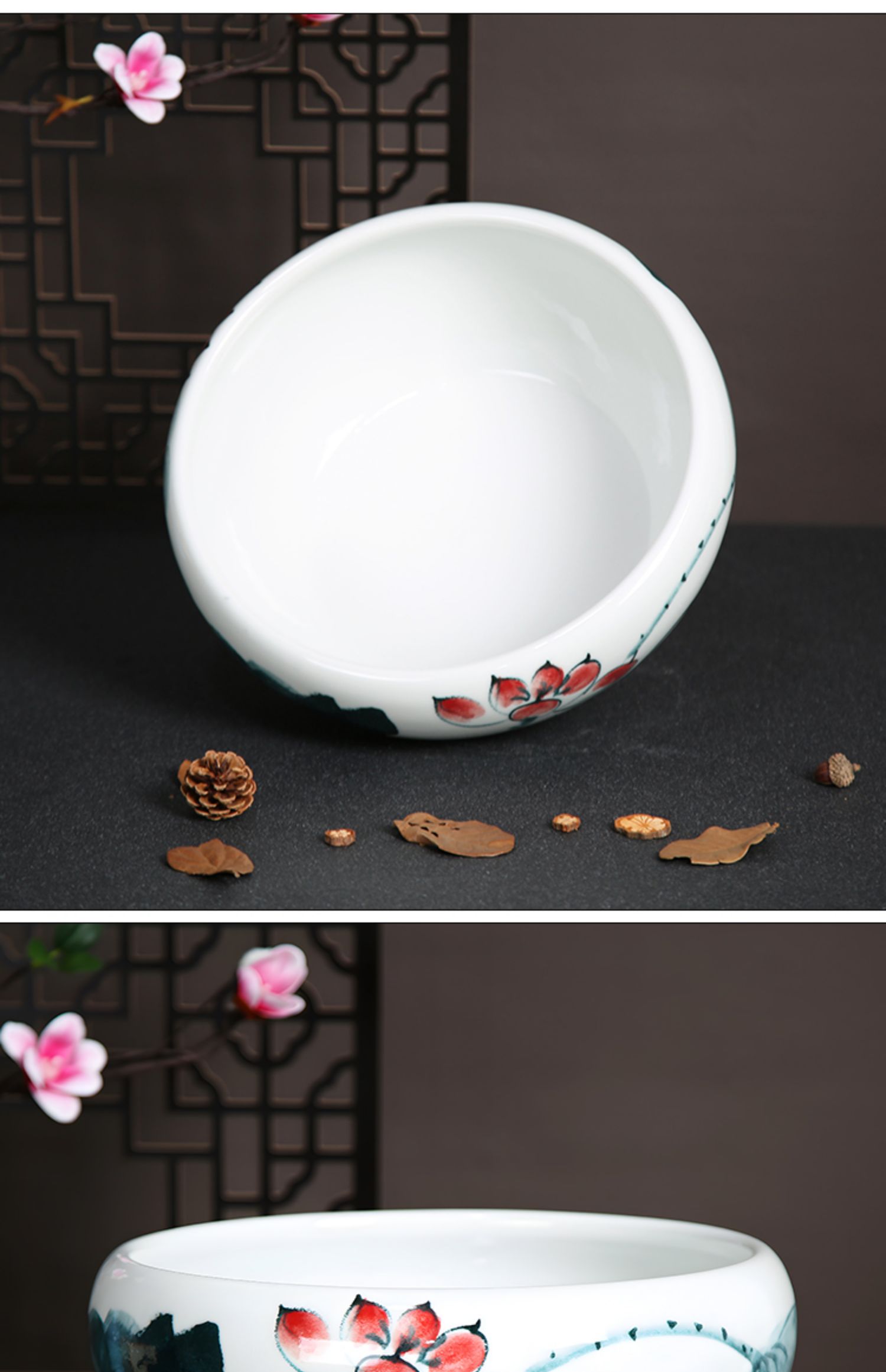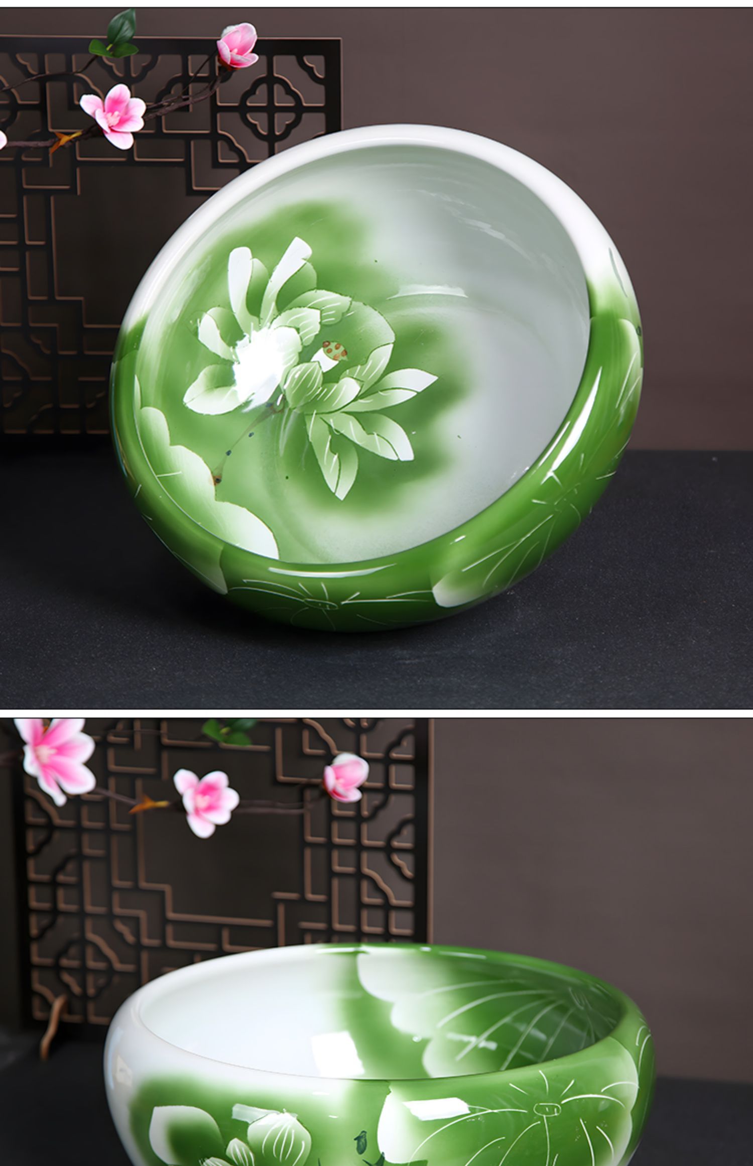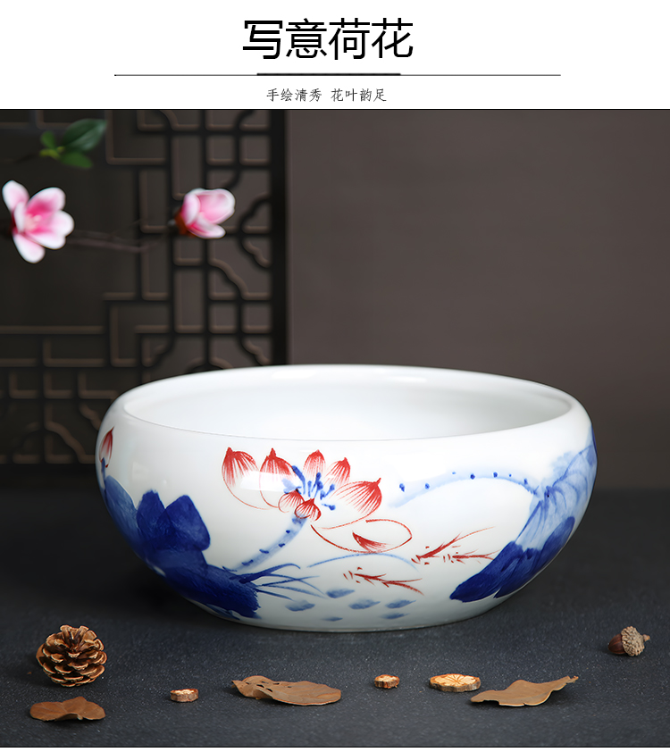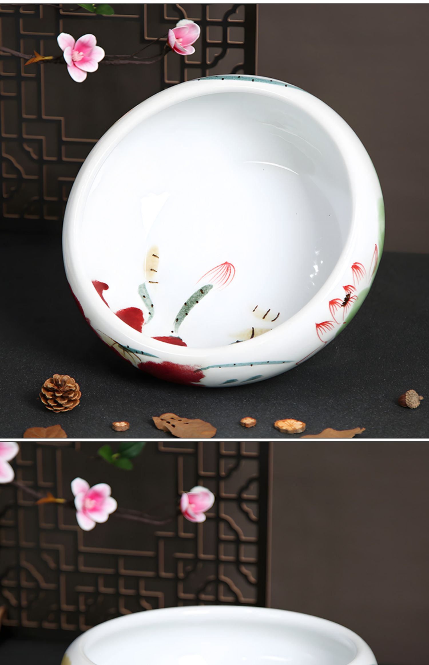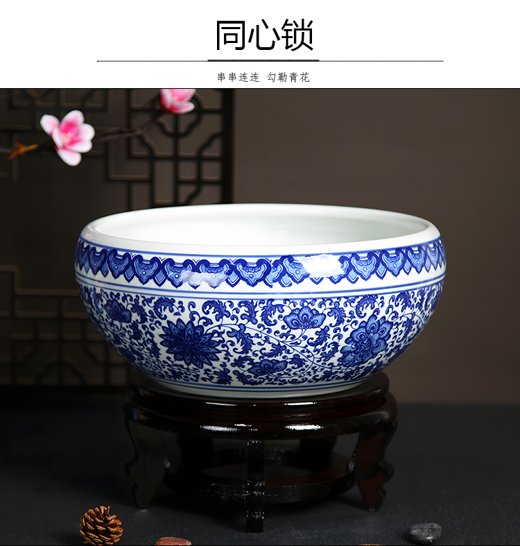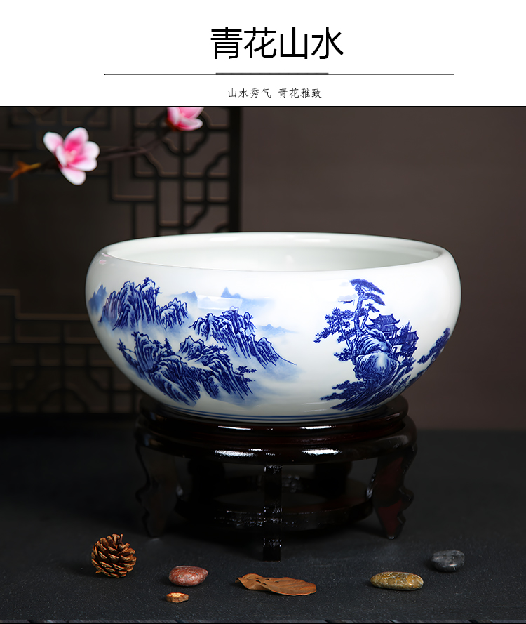 Jingdezhen 세라믹 화분 파란색과 흰색 도자기 연꽃 냄비 물고기 탱크 수련 탱크 오픈 분재 그릇 연꽃 탱크스토어 가기