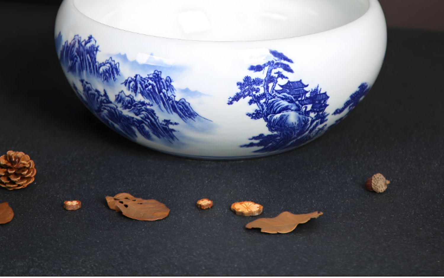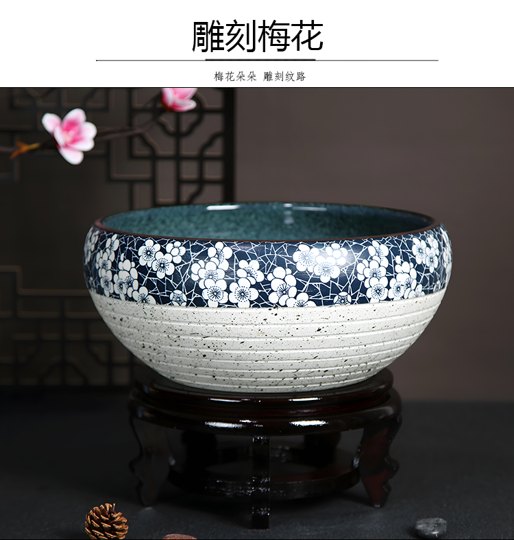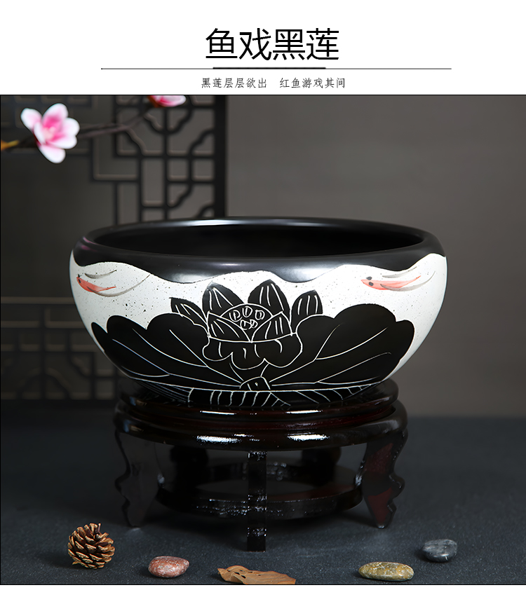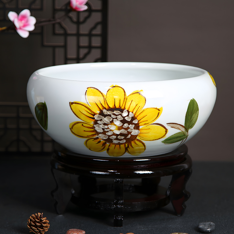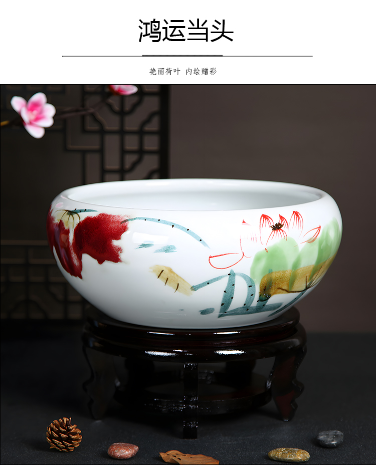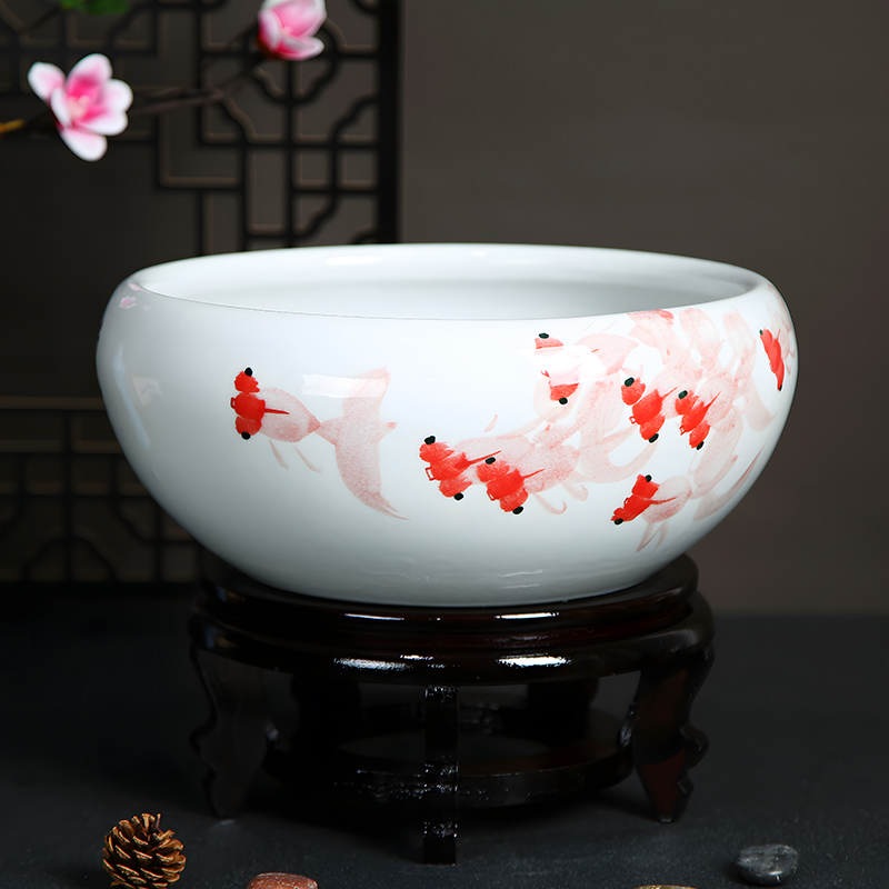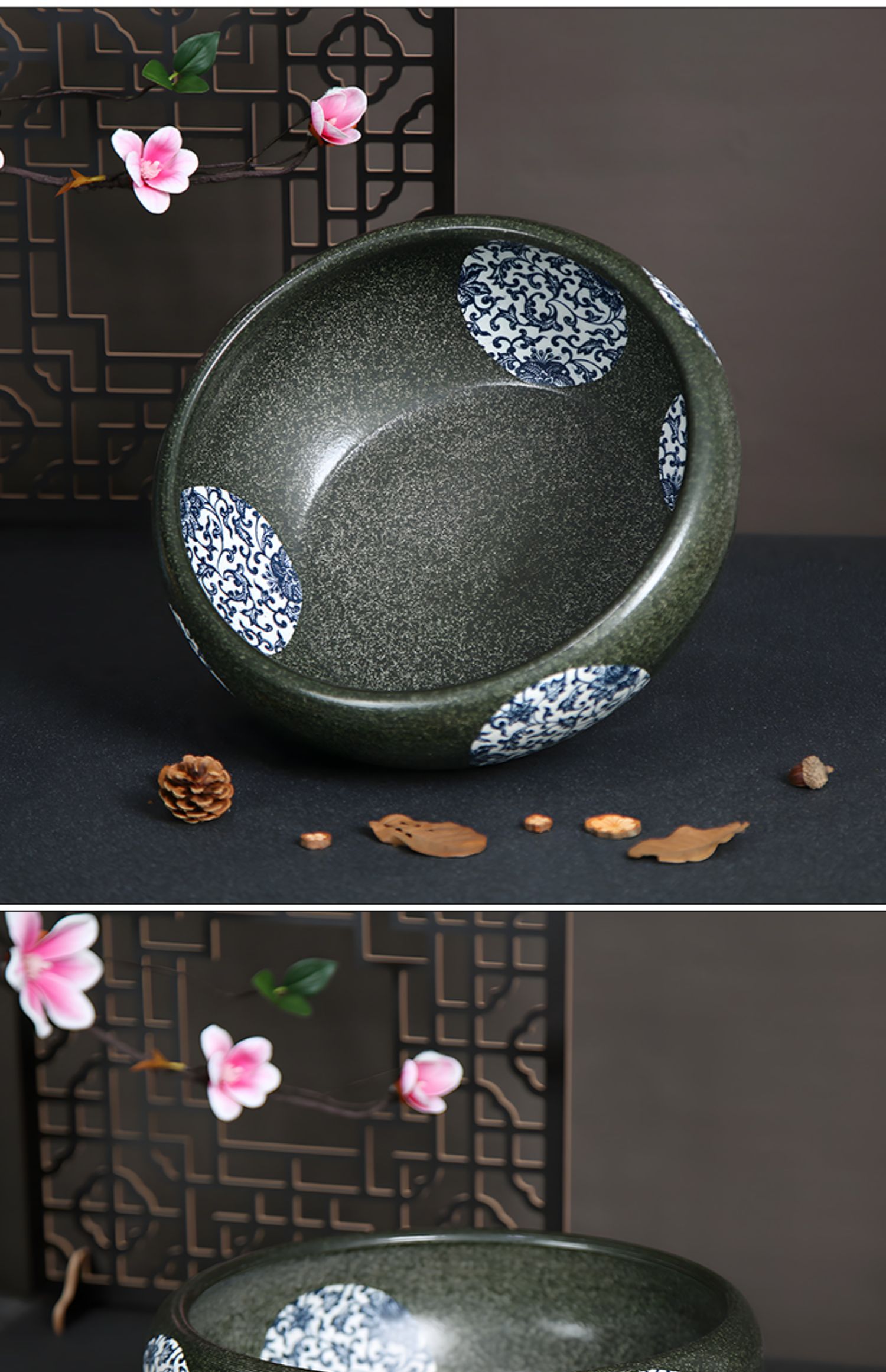 Jingdezhen 세라믹 화분 파란색과 흰색 도자기 연꽃 냄비 물고기 탱크 수련 탱크 오픈 분재 그릇 연꽃 탱크스토어 가기