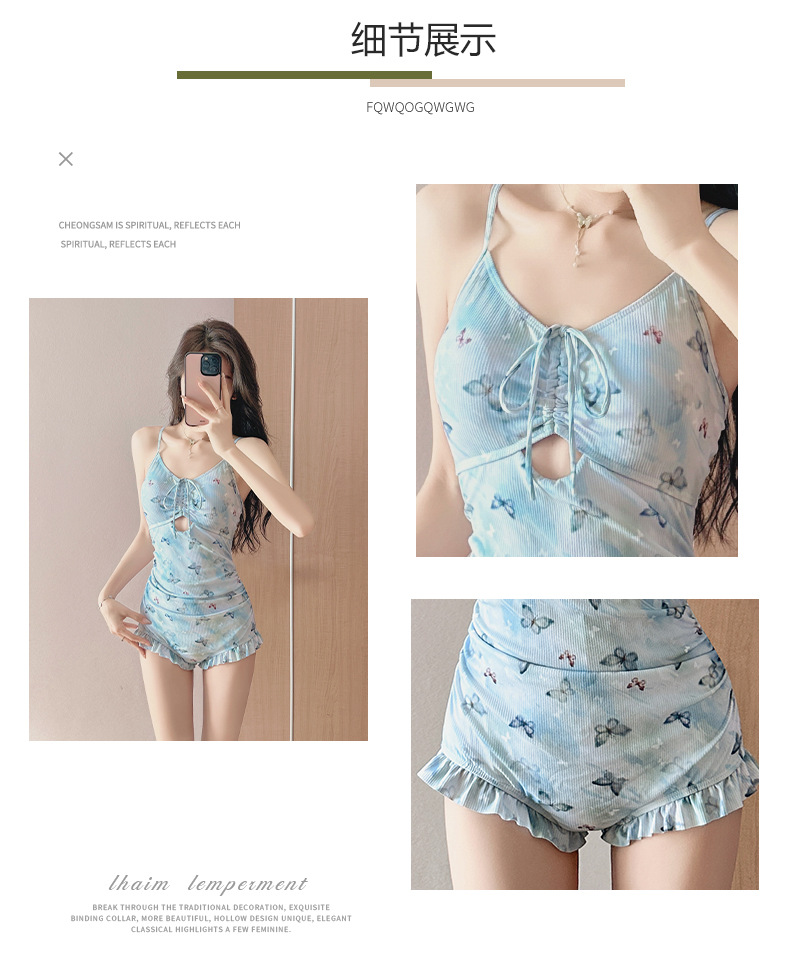 수영복 여성 원피스 투피스 세트 뜨거운 소녀 나비 인쇄 순수한 긴 소매 슬림 휴일 온천 수영복 도매스토어 가기