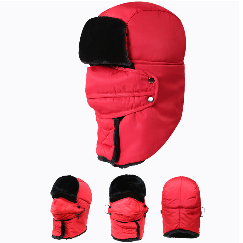 Lei Feng Hat 남성용 야외 방풍 귀 보호 마스크 면화 모자 겨울 기모 따뜻한 스키 승마 목 보호 방탄 모자