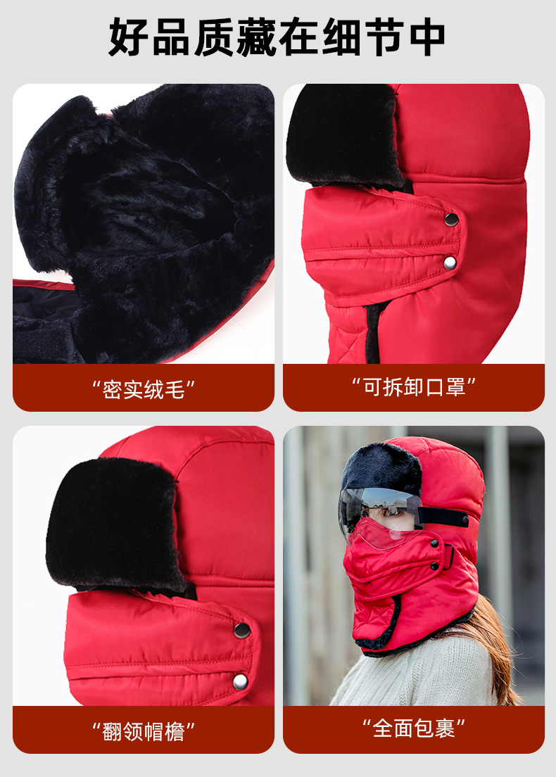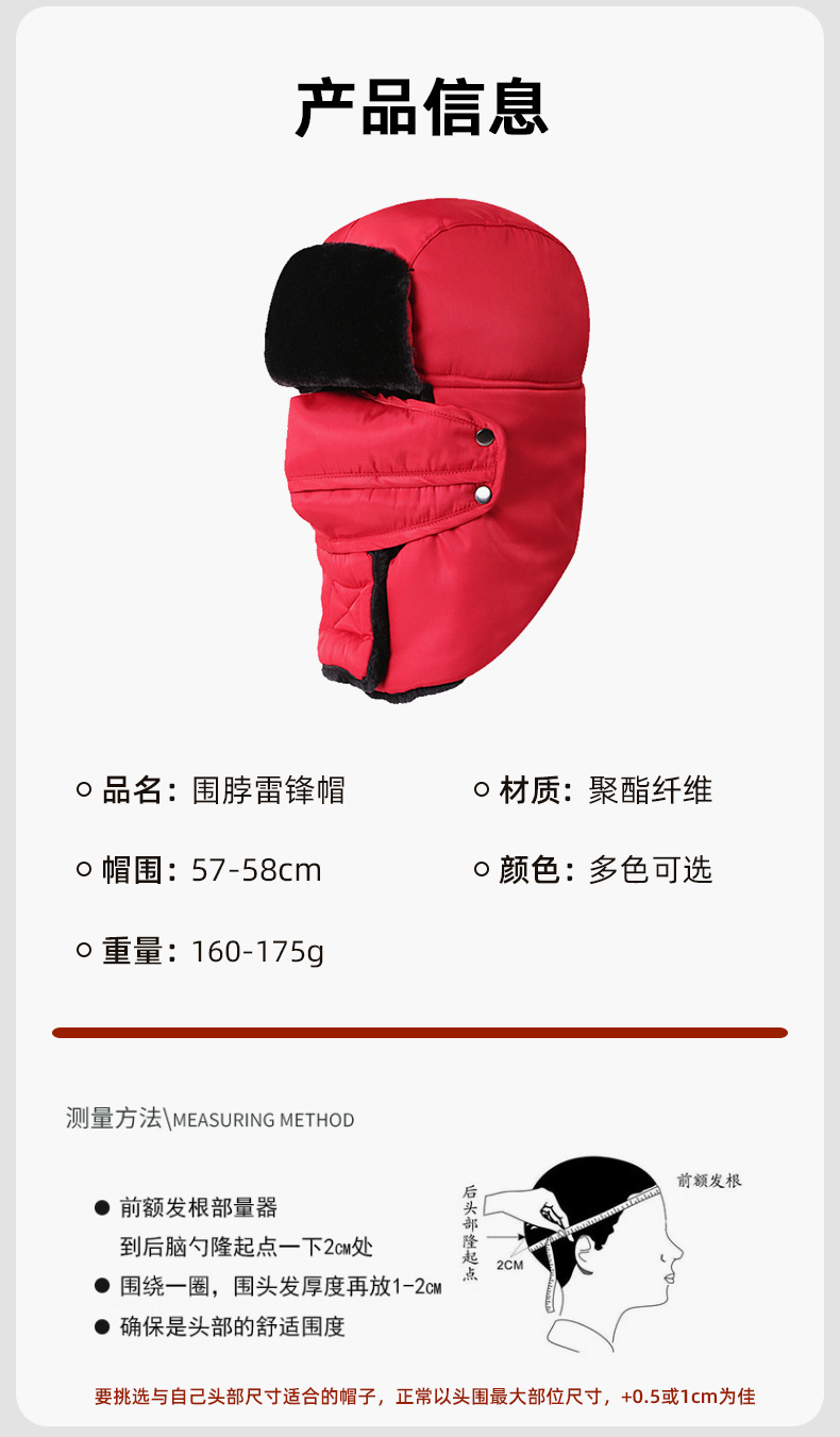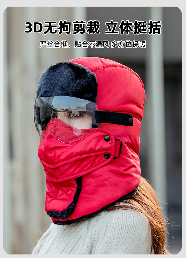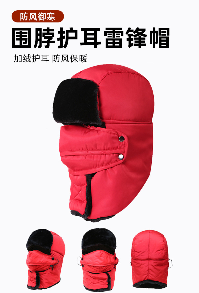 Lei Feng Hat 남성용 야외 방풍 귀 보호 마스크 면화 모자 겨울 기모 따뜻한 스키 승마 목 보호 방탄 모자스토어 가기