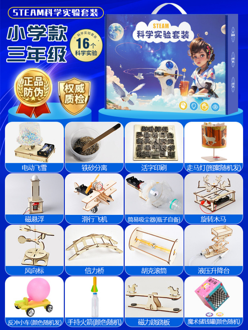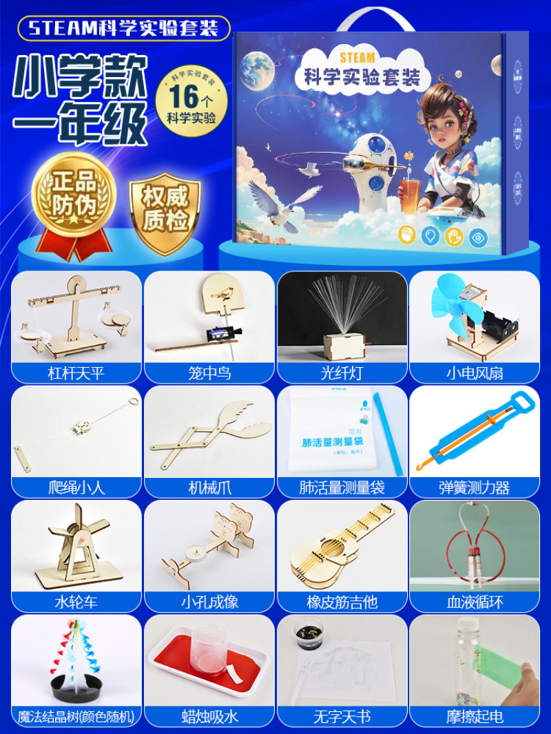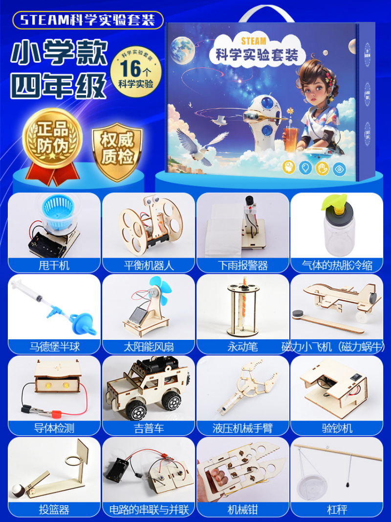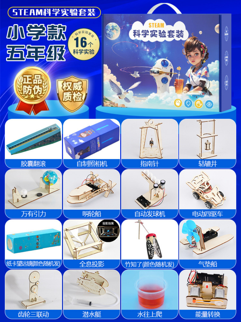 과학 기술 세트 작은 실험 발명 DIY 수제 재료 초등학교 학생들의 퍼즐 과학 및 교육 매뉴얼스토어 가기
