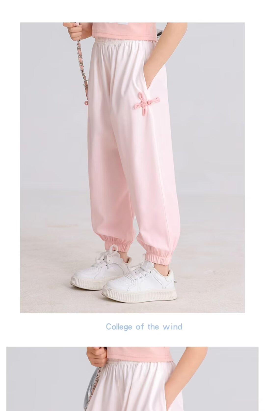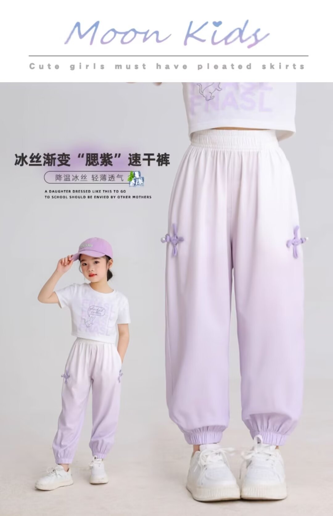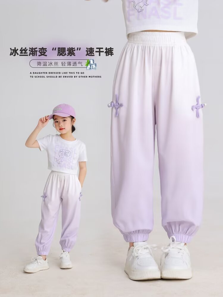 소녀 안티 모기 바지 빠른 건조 바지 여름 새로운 어린이 스포츠 바지 2025 얇은 여름 아이스 실크 캐주얼 바지스토어 가기