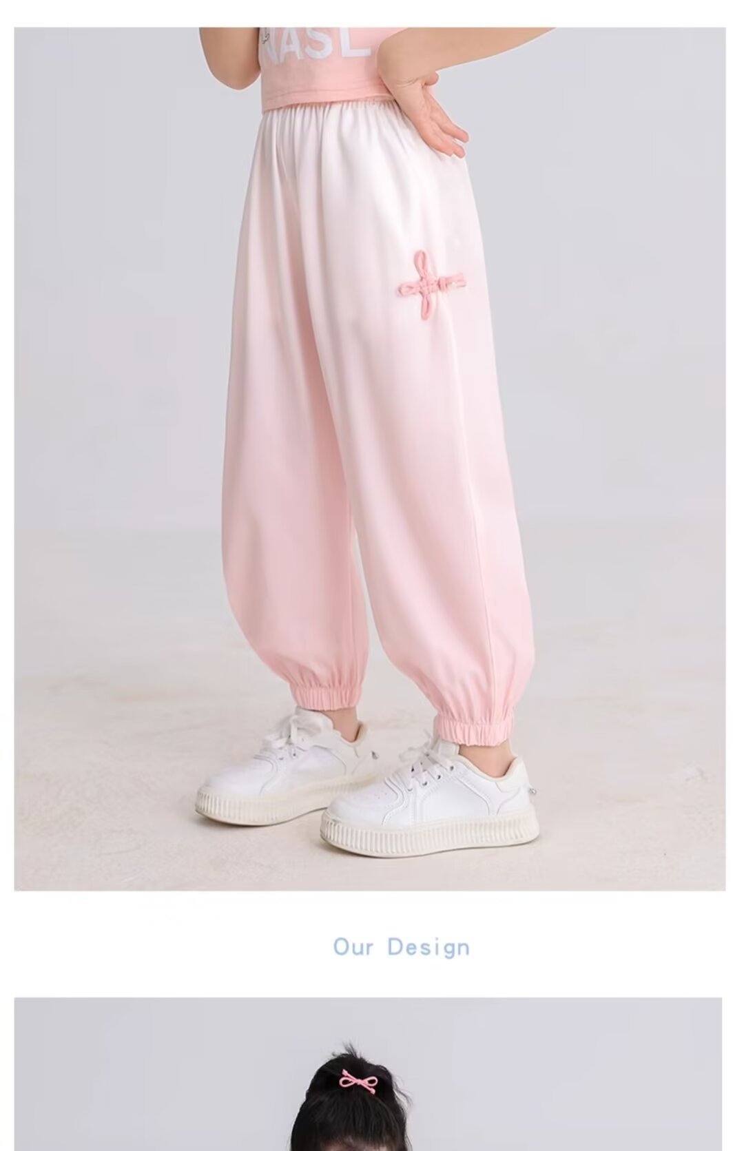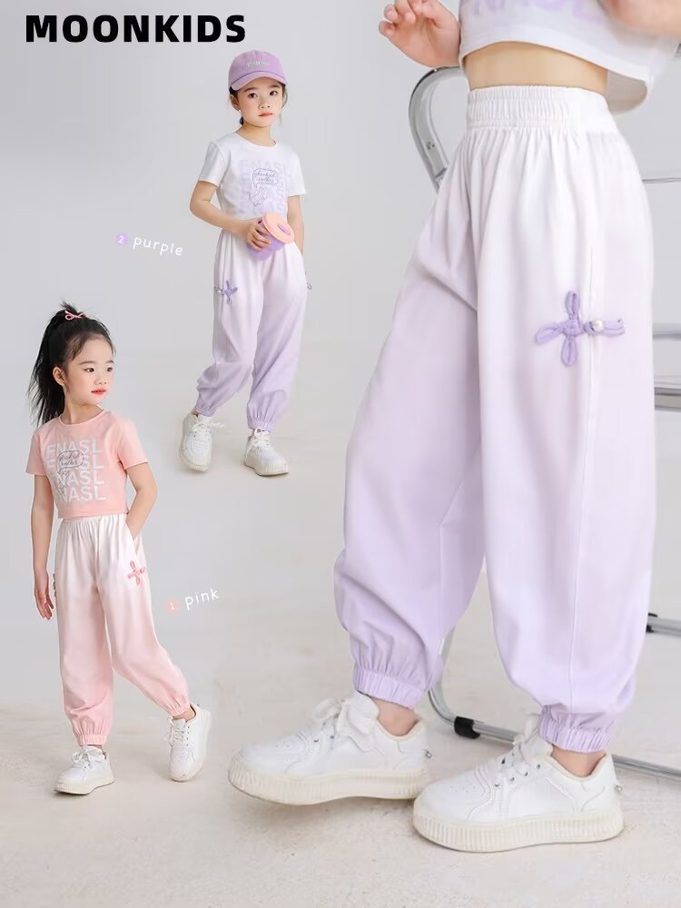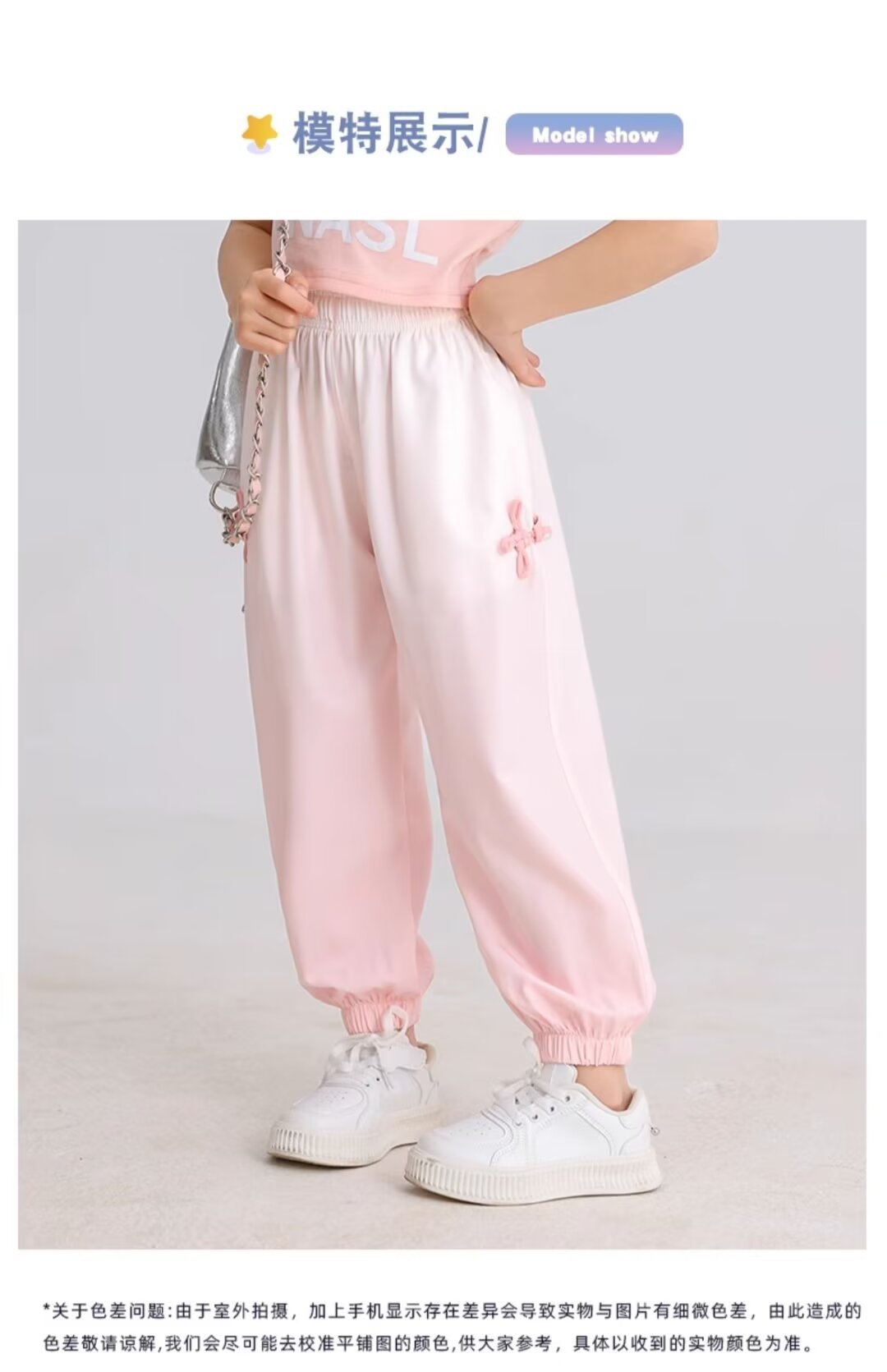 소녀 안티 모기 바지 빠른 건조 바지 여름 새로운 어린이 스포츠 바지 2025 얇은 여름 아이스 실크 캐주얼 바지스토어 가기