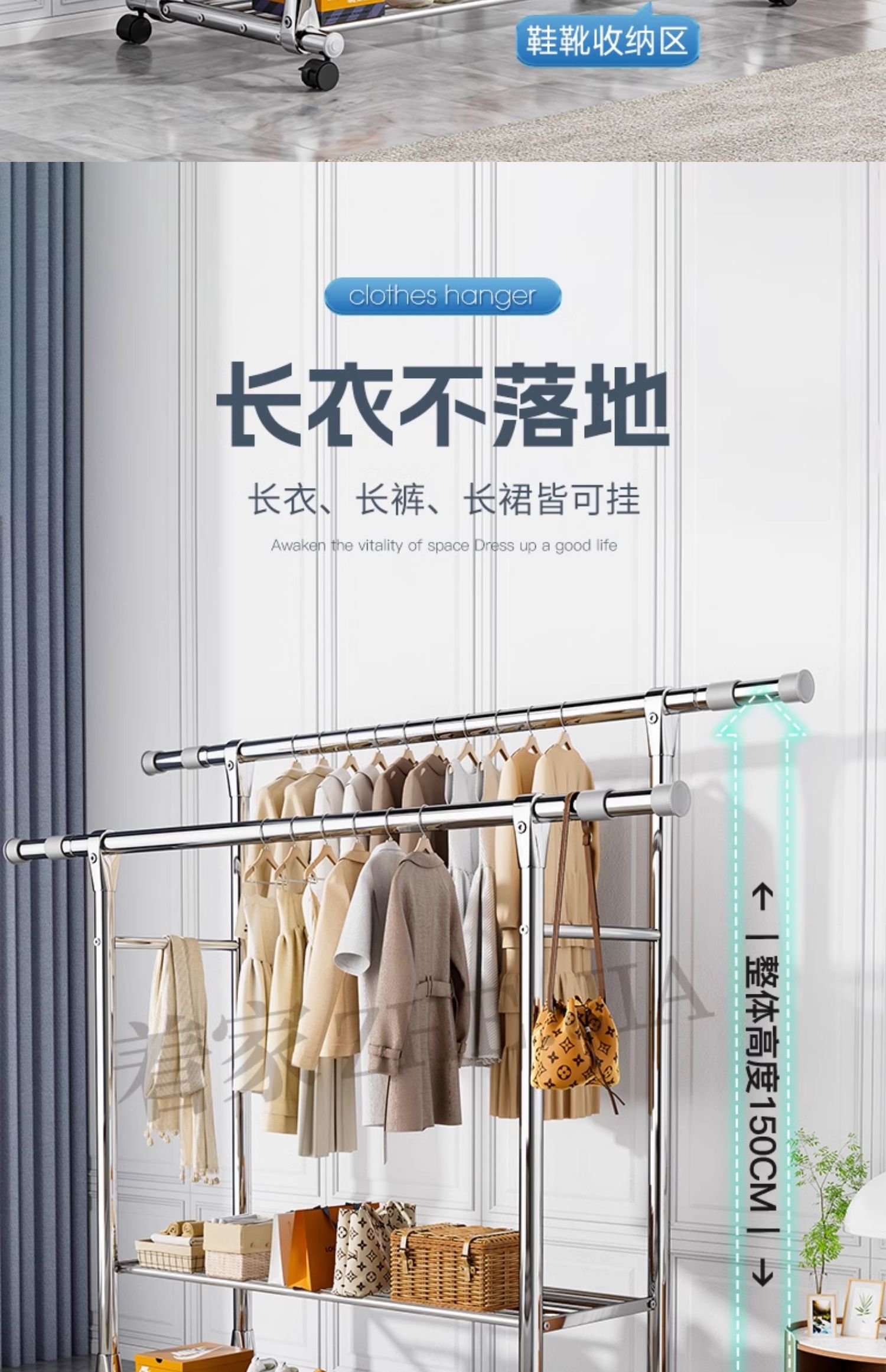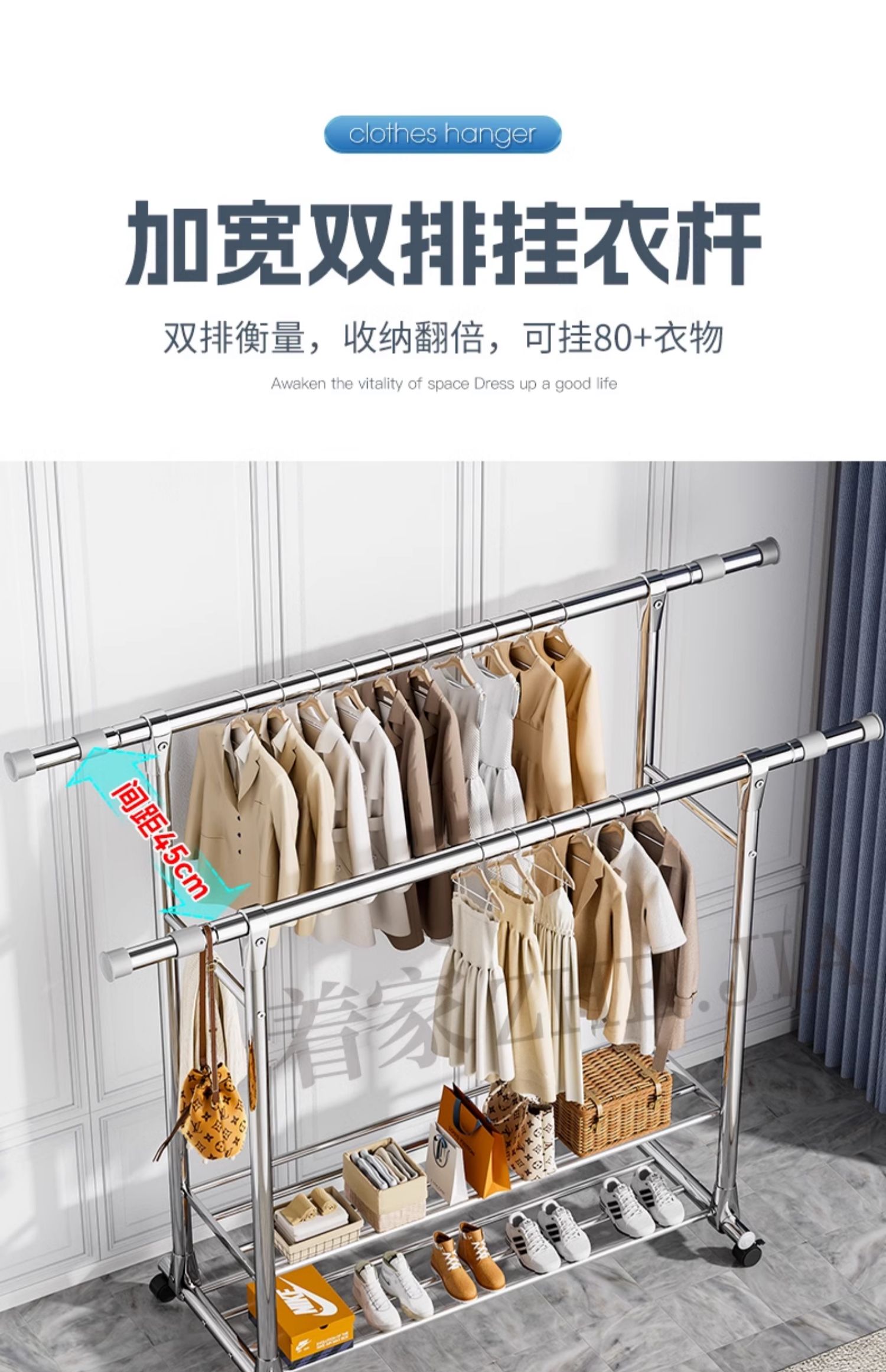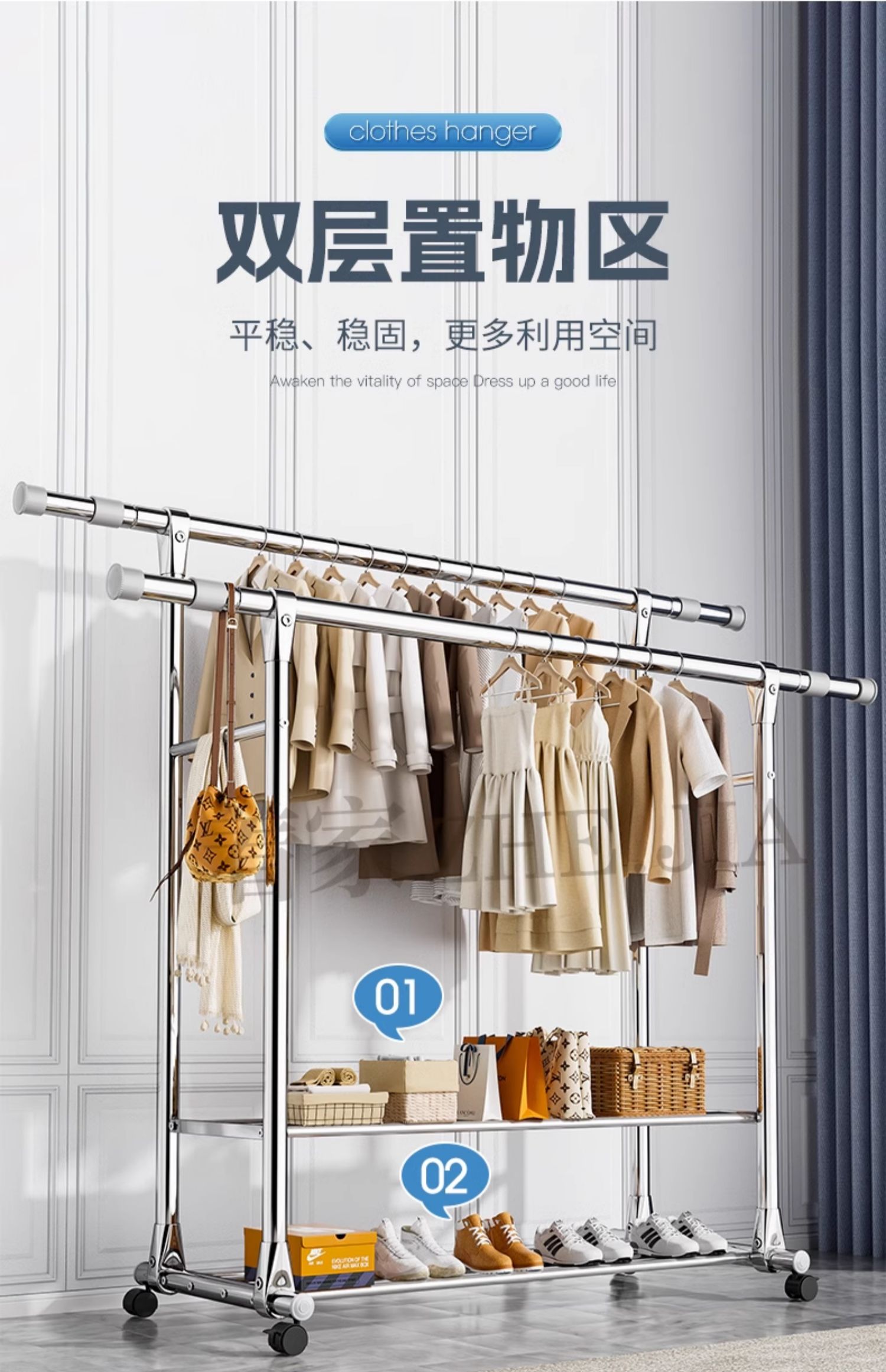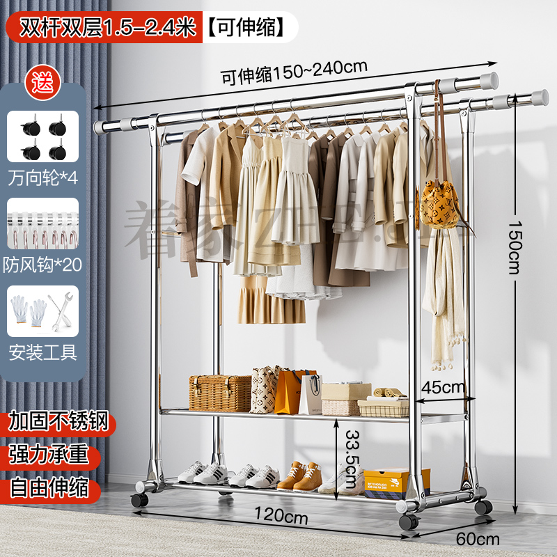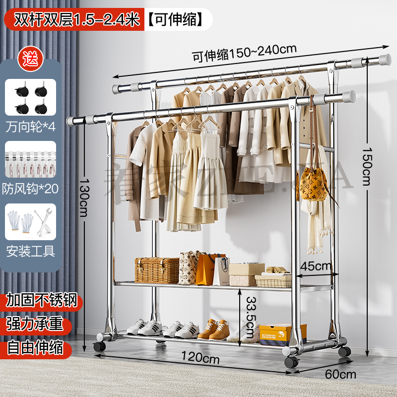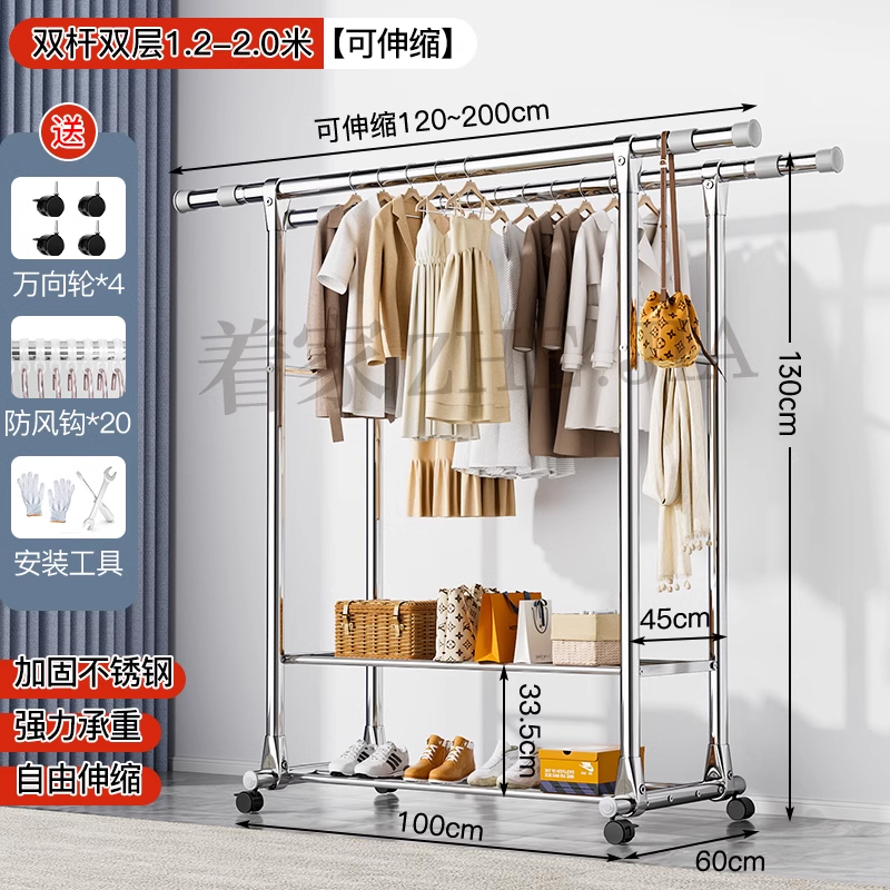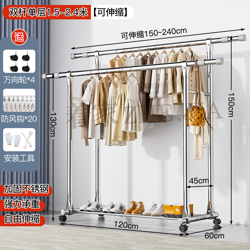 Tiantai Hualian 스테인레스 스틸 더블로드 의류 랙 의류 로드 가정용 발코니 의류 랙 텔레스코픽 야외 의류 랙 아티팩트스토어 가기