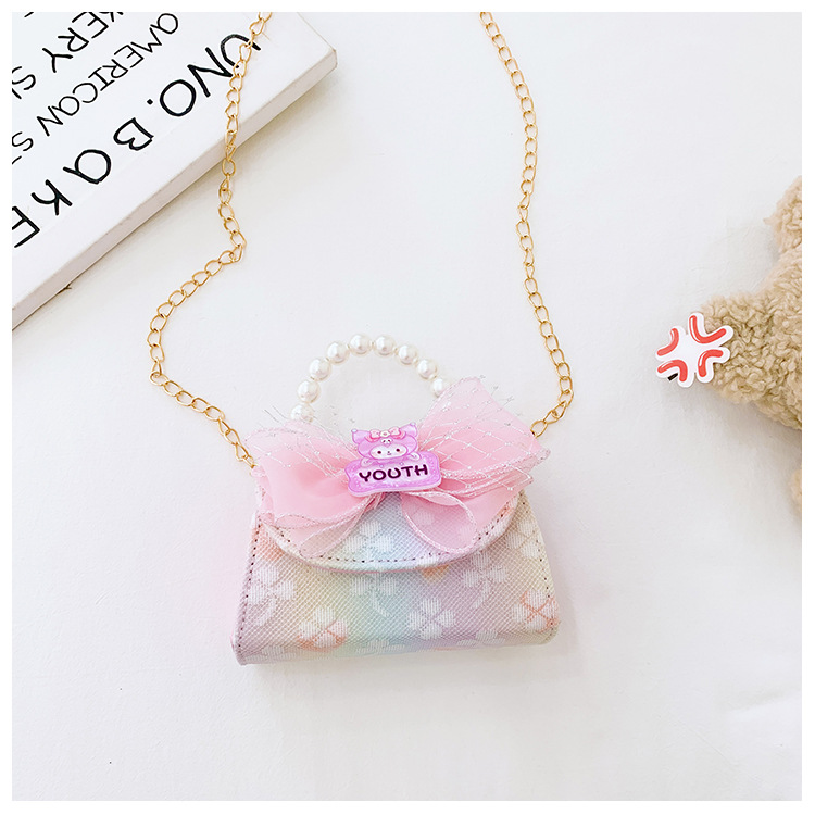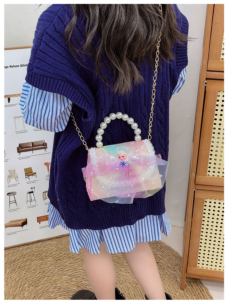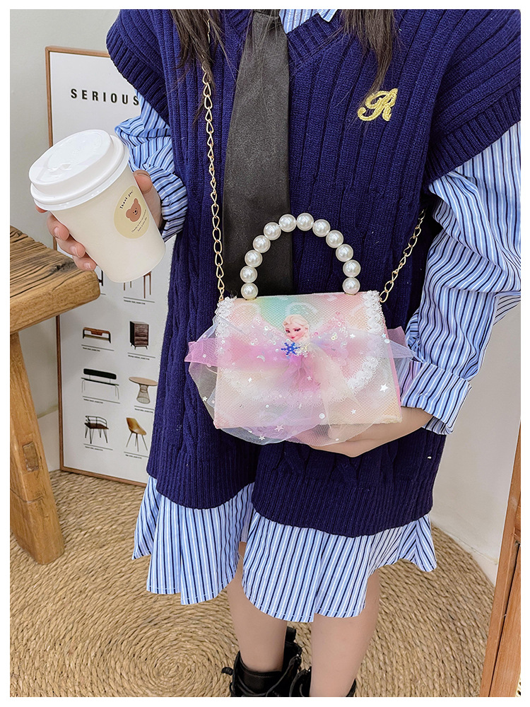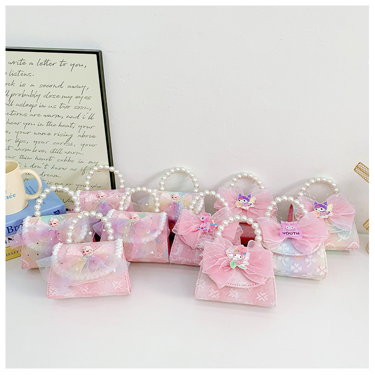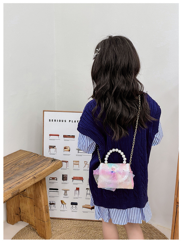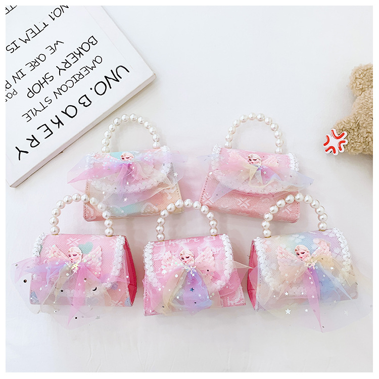 어린이 가방 패션 공주 진주 핸드백 귀여운 작은 소녀 동전 지갑 세련된 소녀 어깨 크로스 백