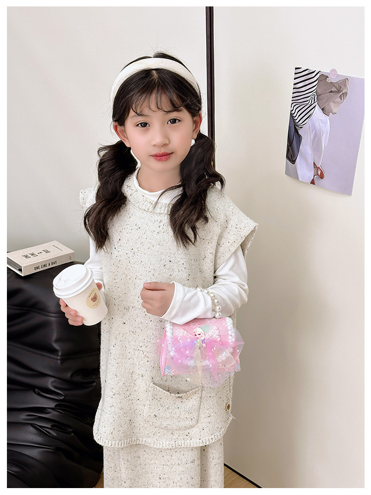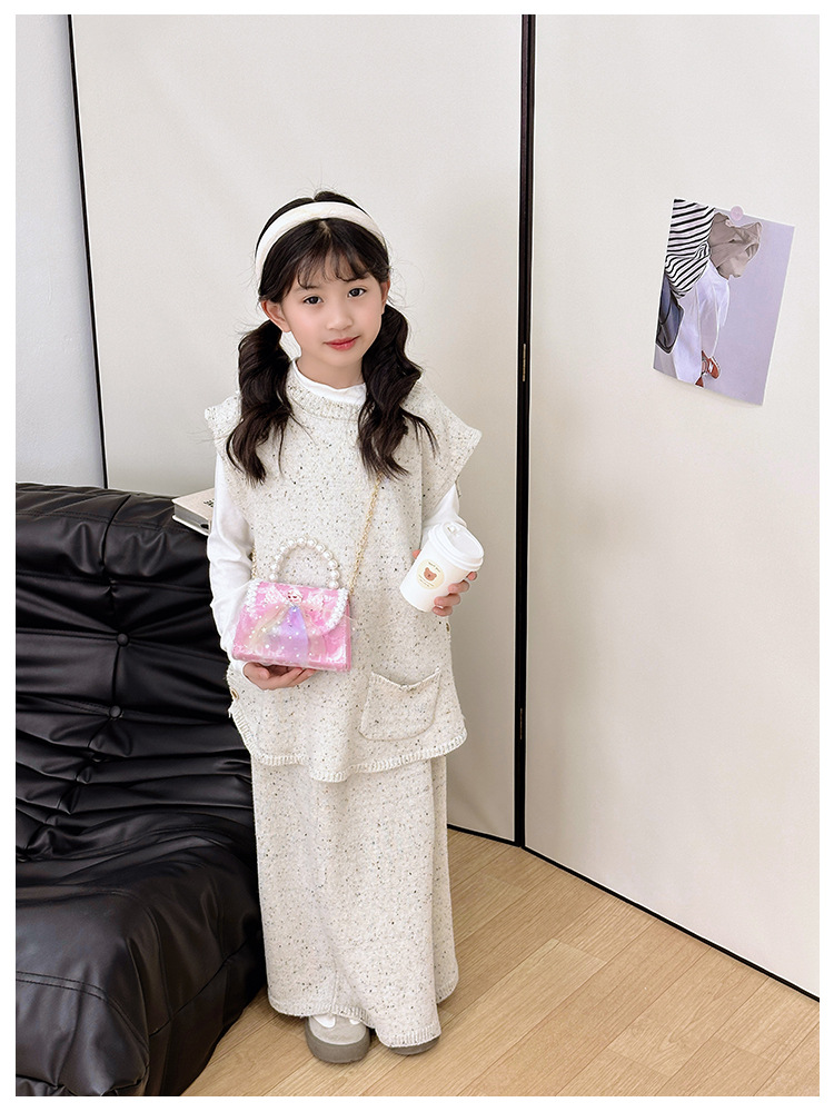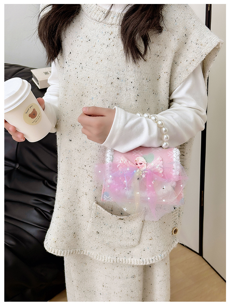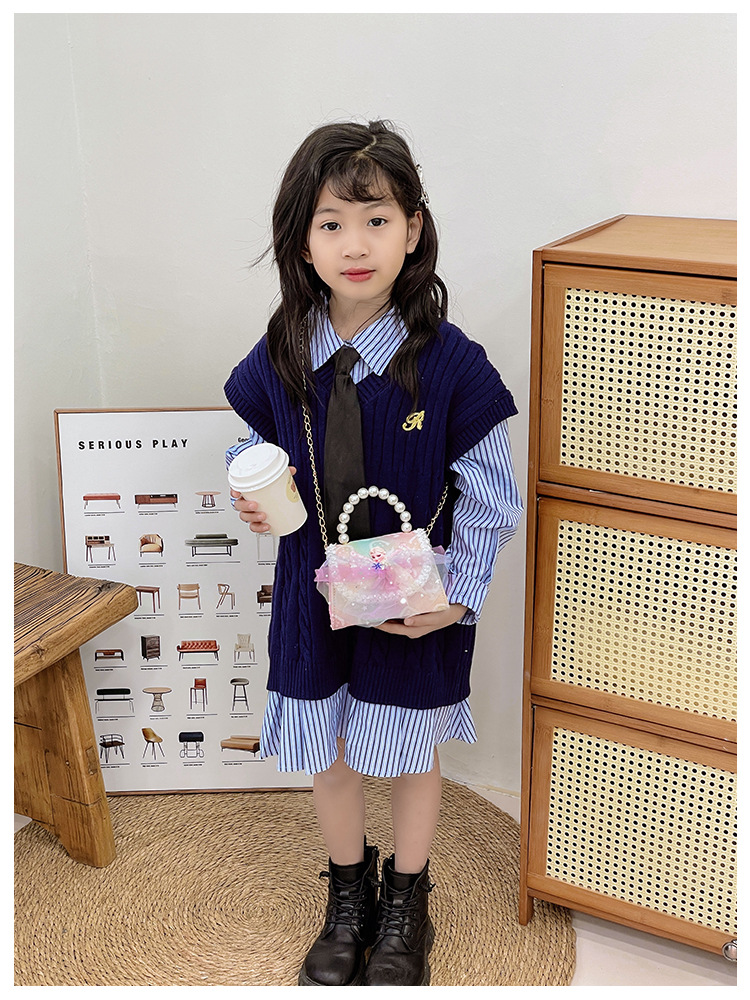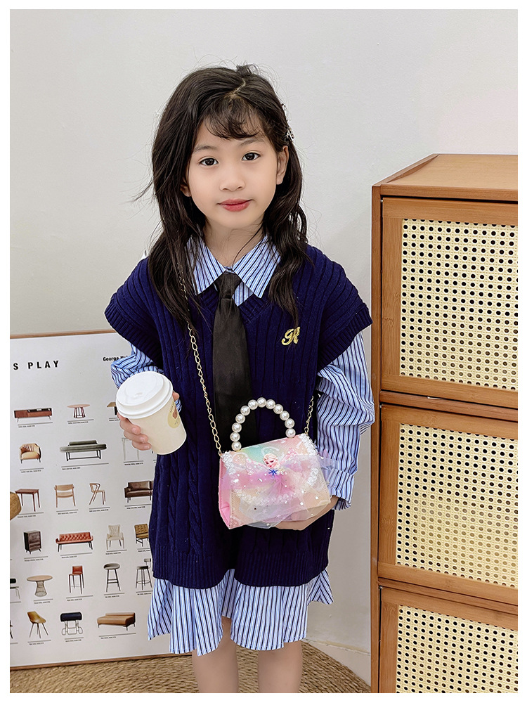 어린이 가방 패션 공주 진주 핸드백 귀여운 작은 소녀 동전 지갑 세련된 소녀 어깨 크로스 백