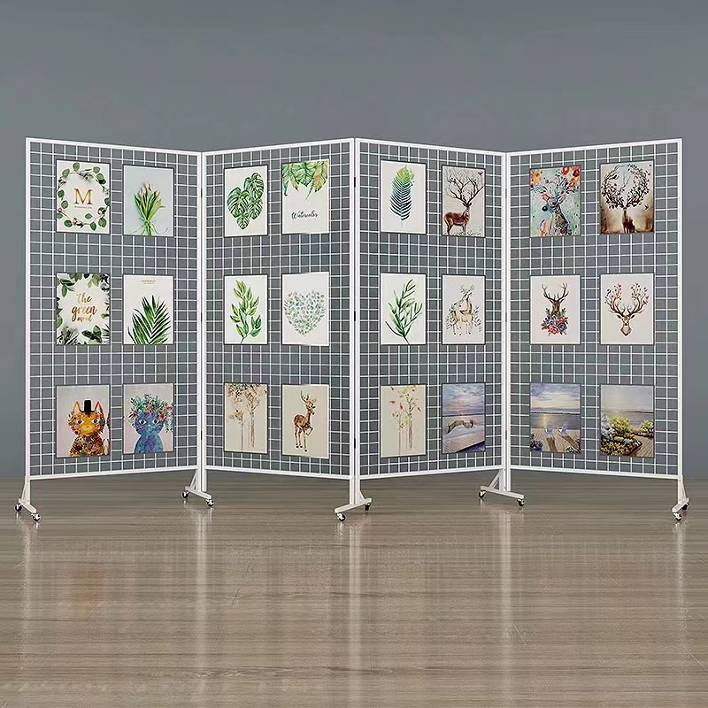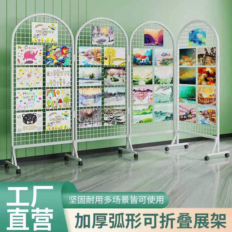 Tiantai Hualian 철 격자 접이식 디스플레이 랙 유치원 예술 지역 작품 서예 전시회 원형 수직 이동스토어 가기