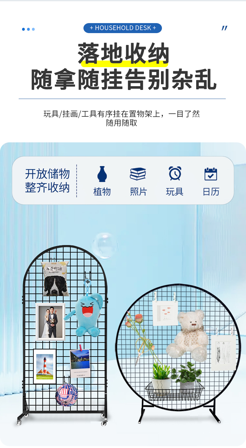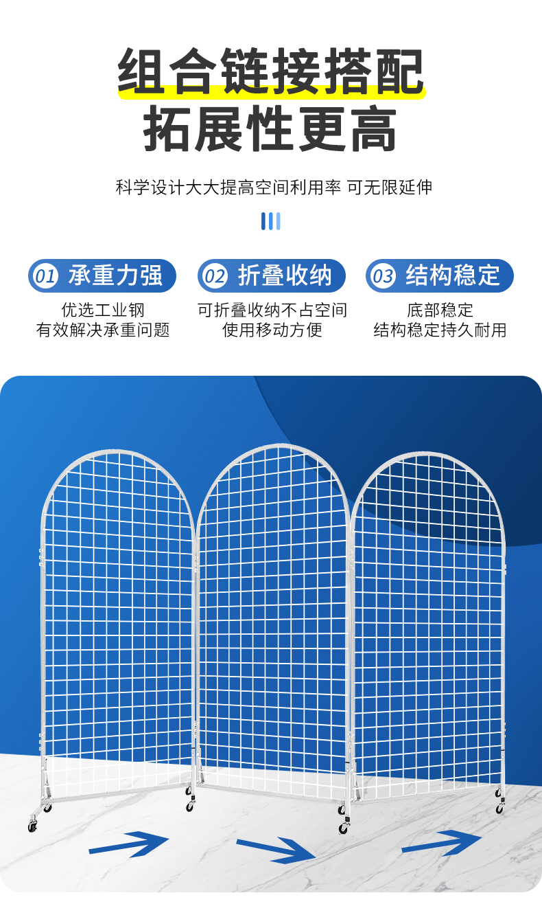 Tiantai Hualian 철 격자 접이식 디스플레이 랙 유치원 예술 지역 작품 서예 전시회 원형 수직 이동