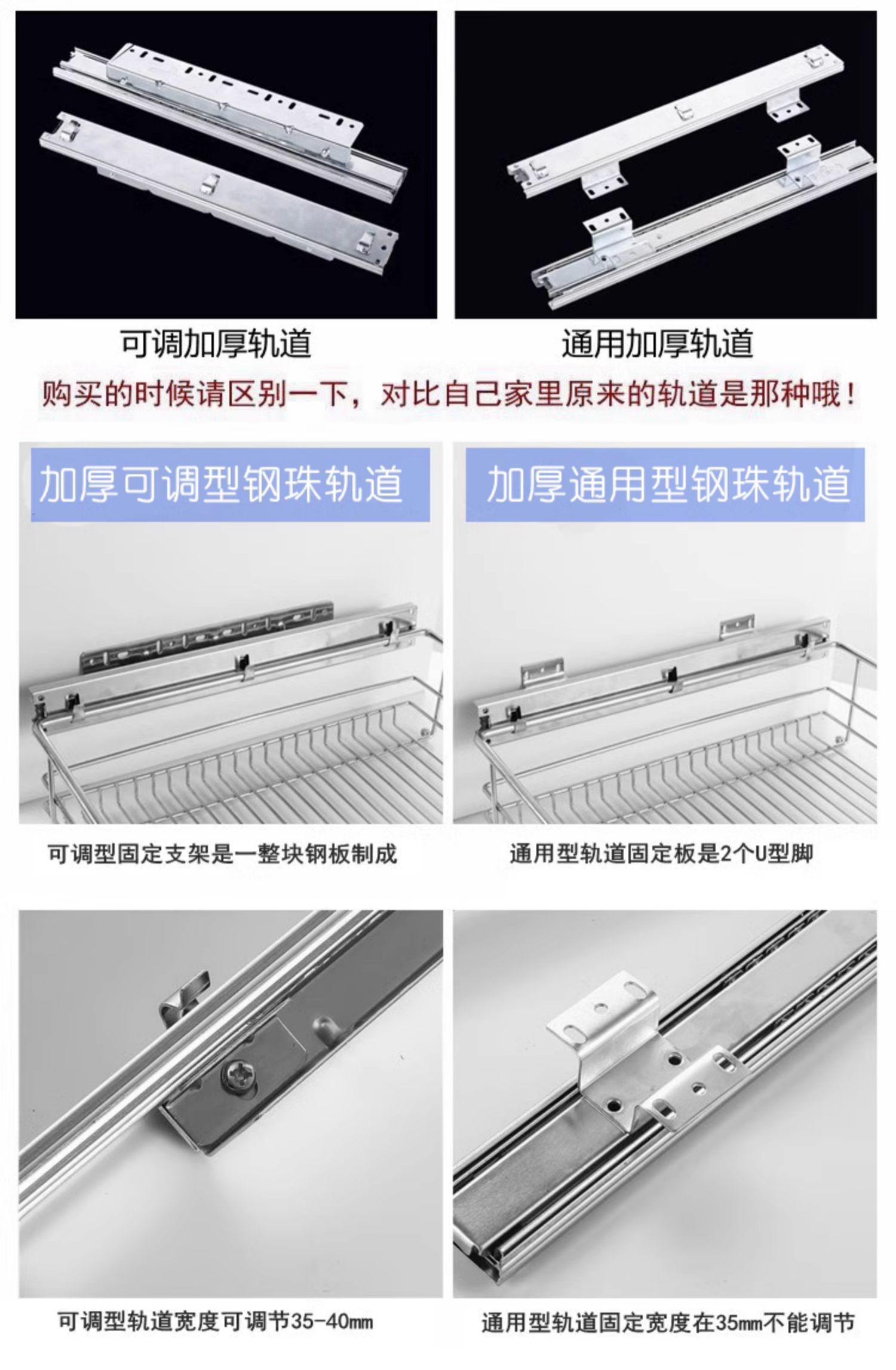 Tiantai Hualian 무료 배송 캐비닛 바구니 두꺼운 사이드 레일 주방 그릇 바구니 슬라이드 레일 조정 가능한 레일 찬장 3 섹션