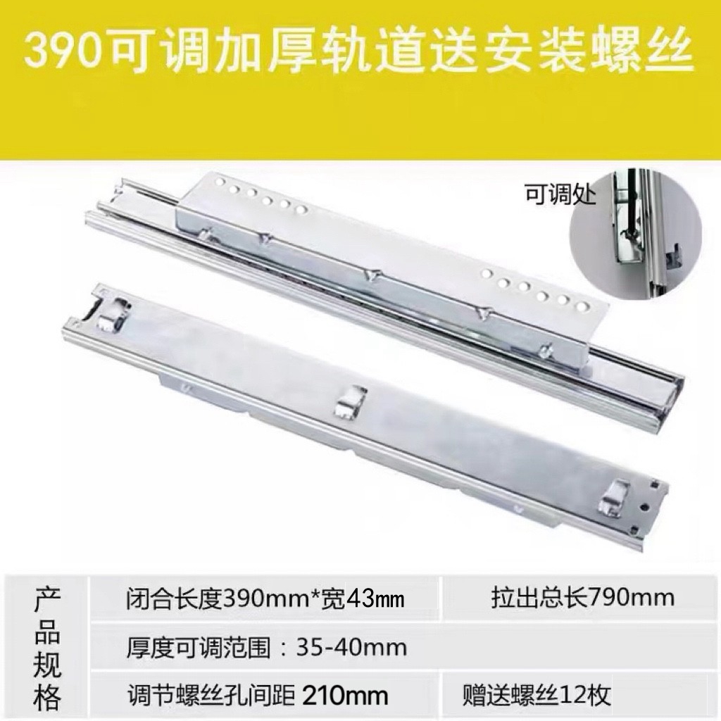 • 두꺼워진 390 길이 [조정 가능한 댐핑 버퍼 레일] 장착 나사 포함(한 쌍에 2개)