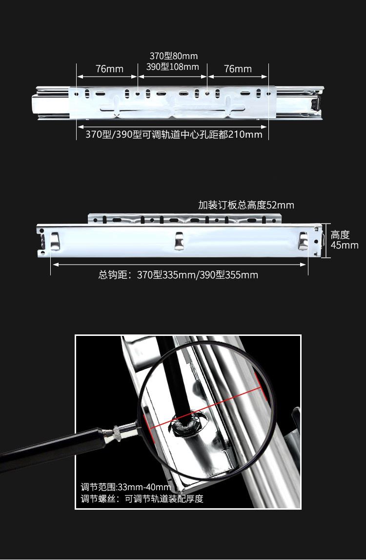 • 두꺼워진 370 길이 [조정 가능한 댐핑 버퍼 레일]에는 장착 나사가 함께 제공됩니다(한 쌍에 2개)